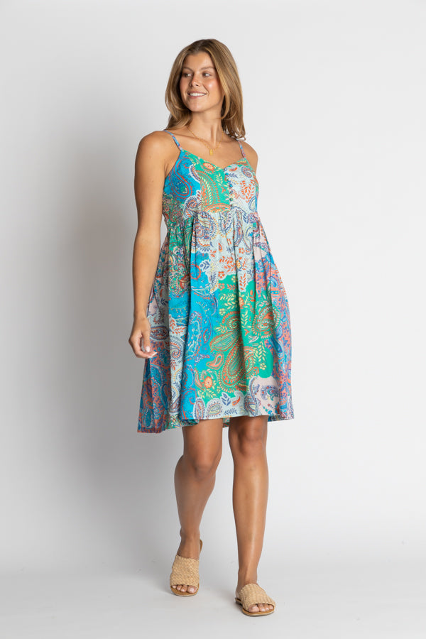 Step into sunny-day style with the IBSA Shira Sundress — the kind of dress that makes every outing feel a little brighter. Made from 100% cotton in a beautiful printed design, it’s soft, breathable, and effortlessly wearable. With a flattering V-neck, buttoned bodice, and adjustable straps for the perfect fit, this Australian-designed sundress blends comfort with charm. The shirred back adds flexibility, while handy side pockets make it a practical favourite too.