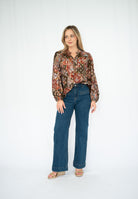 There’s something truly special about this piece. The Simone Top is all about rich, expressive colour layered over a soft, sheer base, finished with delicate gold detailing that catches the light in the most beautiful way. The relaxed silhouette drapes effortlessly, while the gathered neckline and button detail add a touch of softness and charm. It feels light, floaty and just a little bit luxe without trying too hard.