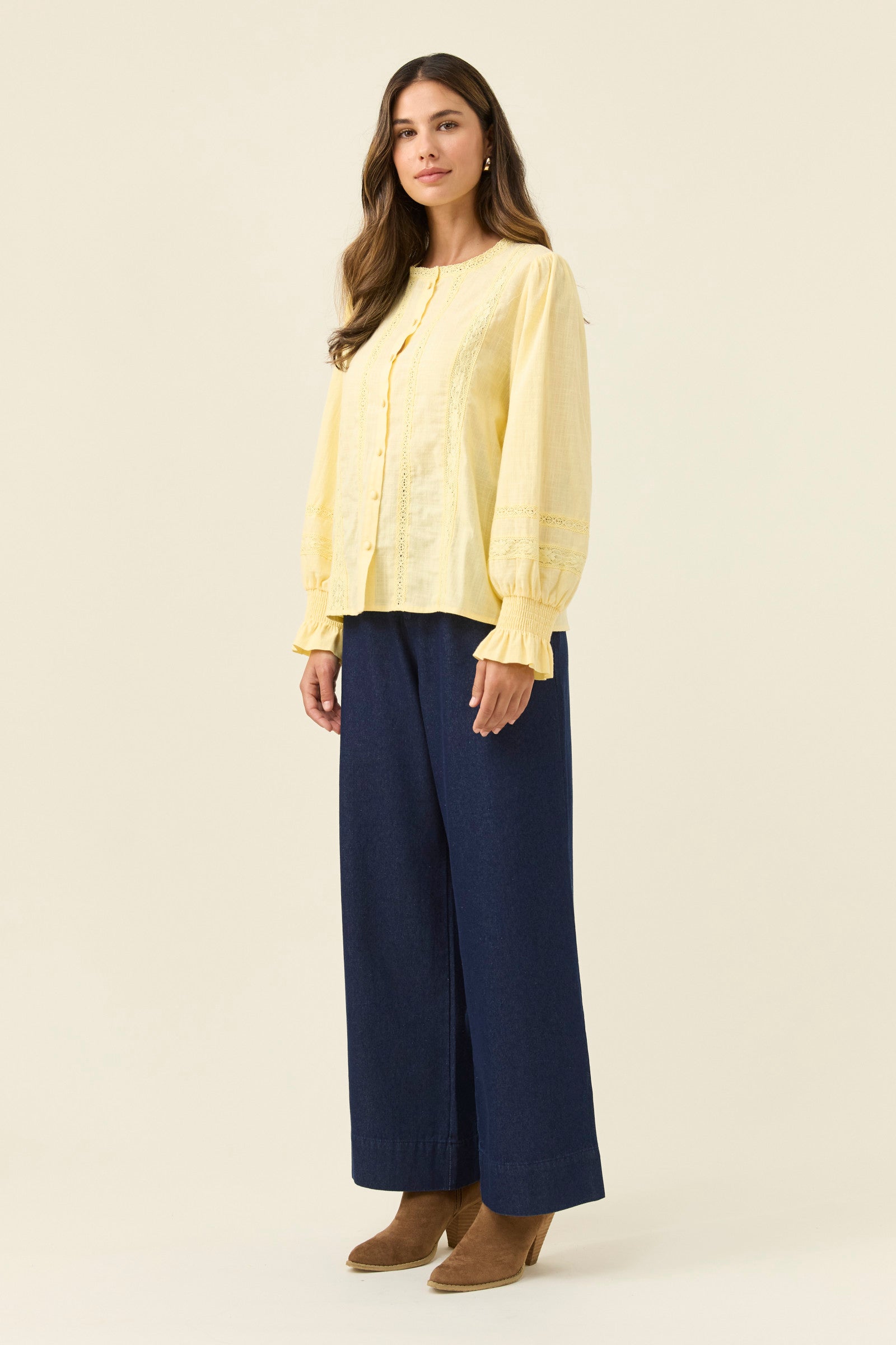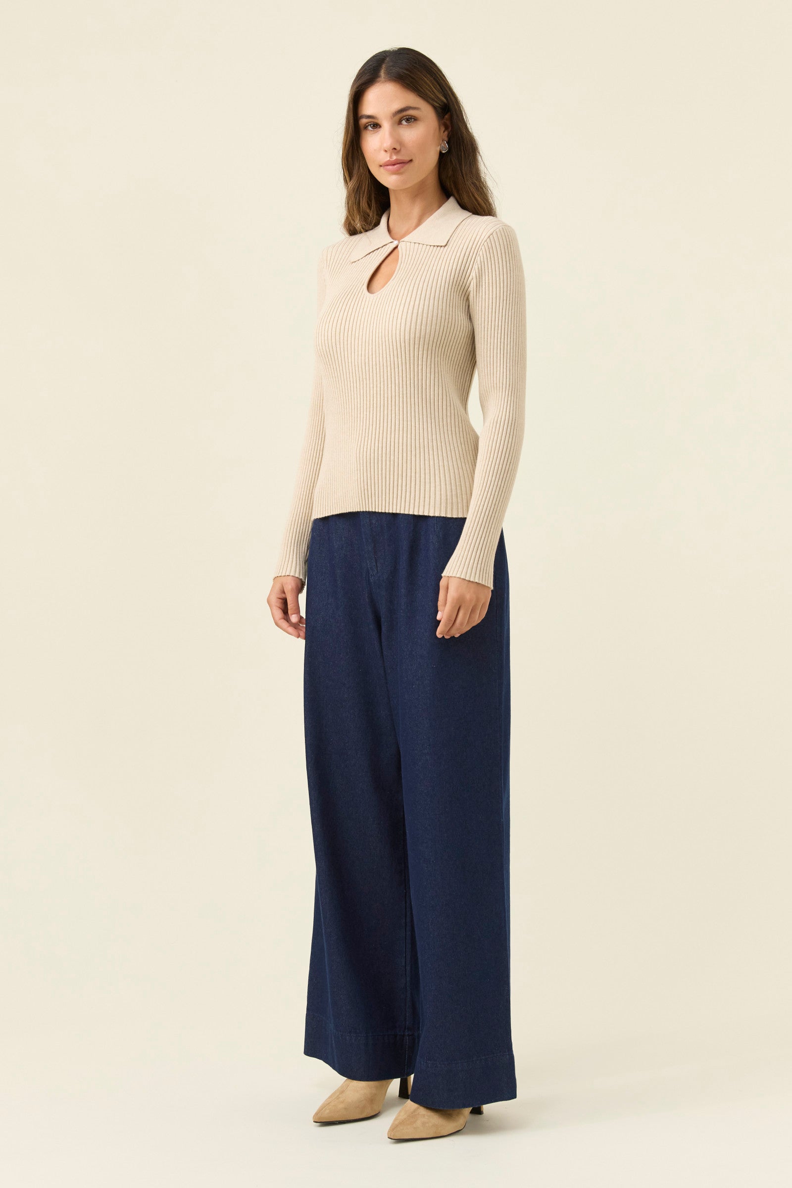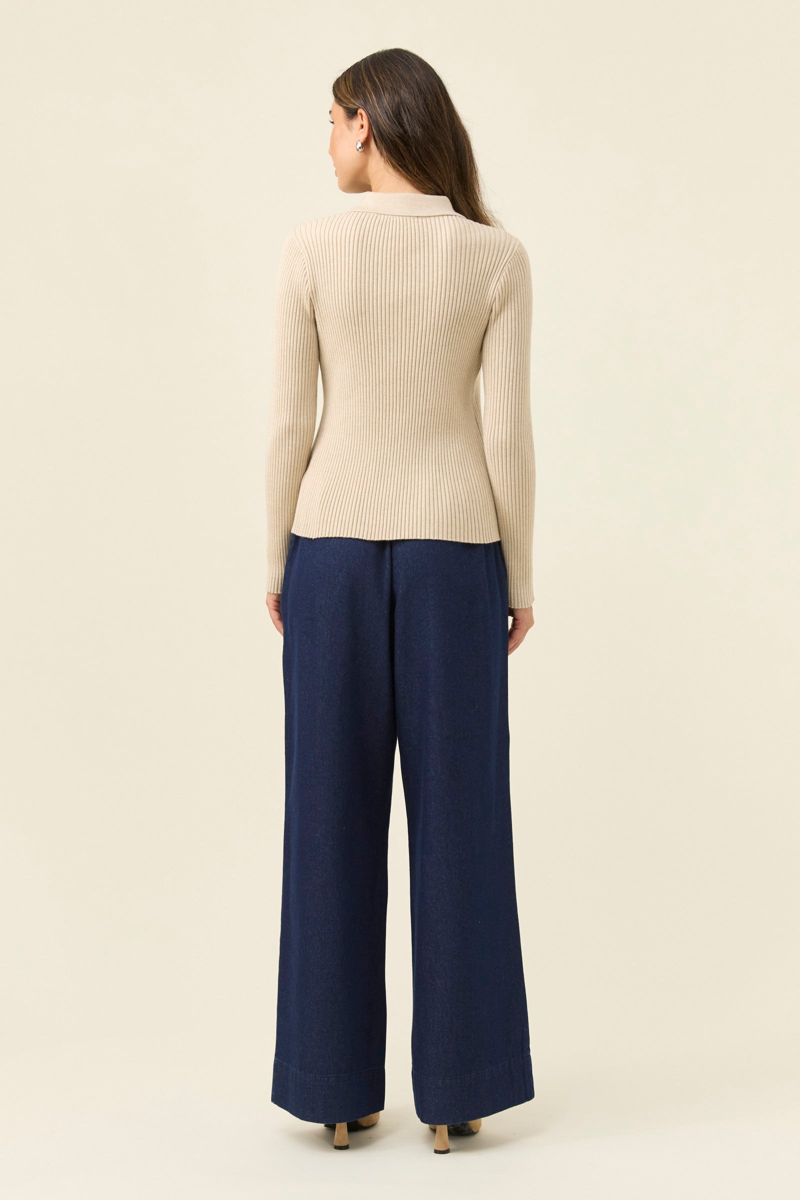 A modern wide-leg pant with a relaxed yet structured feel. Designed with a high waist, soft shaping through the front and comfort at the back, the Sloane Denim Pant balances ease with polish.