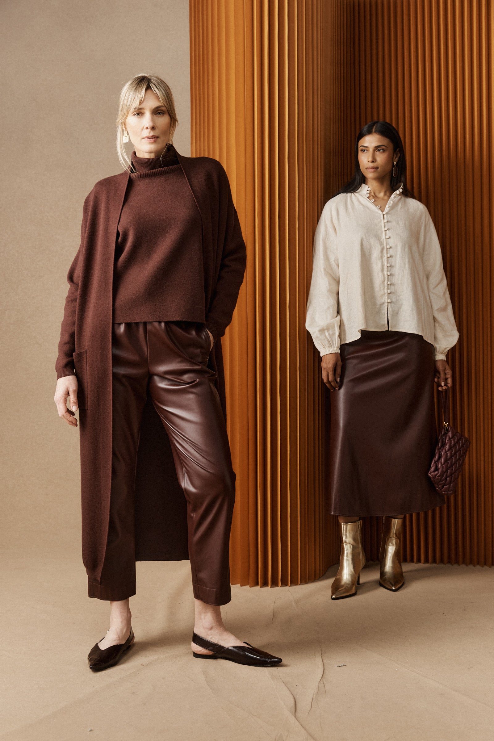 - Leather-look finish