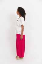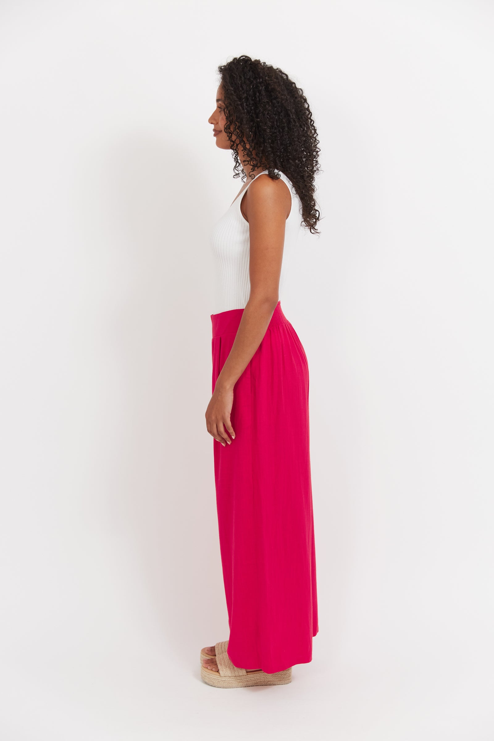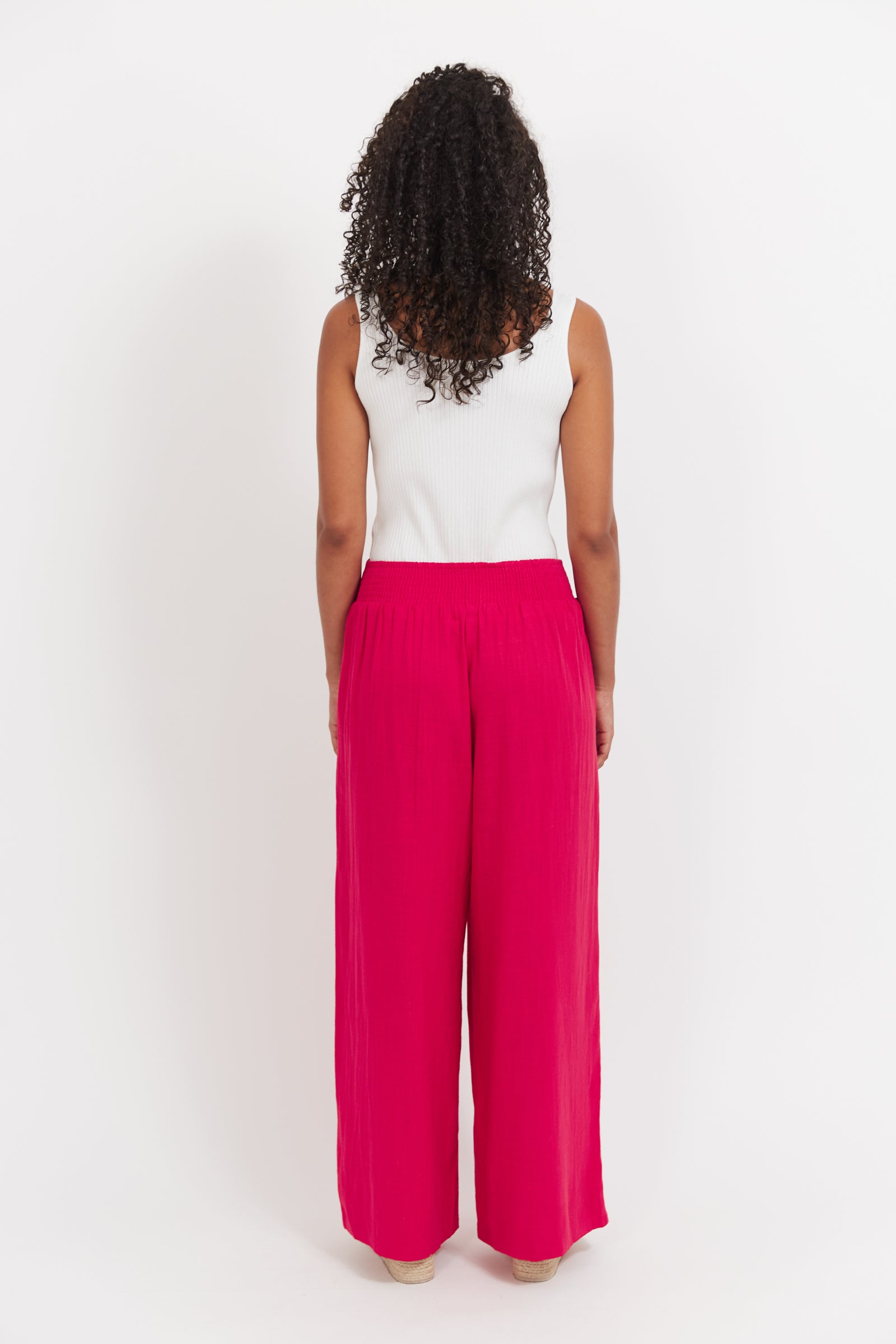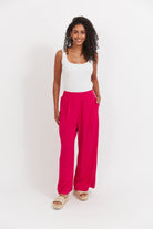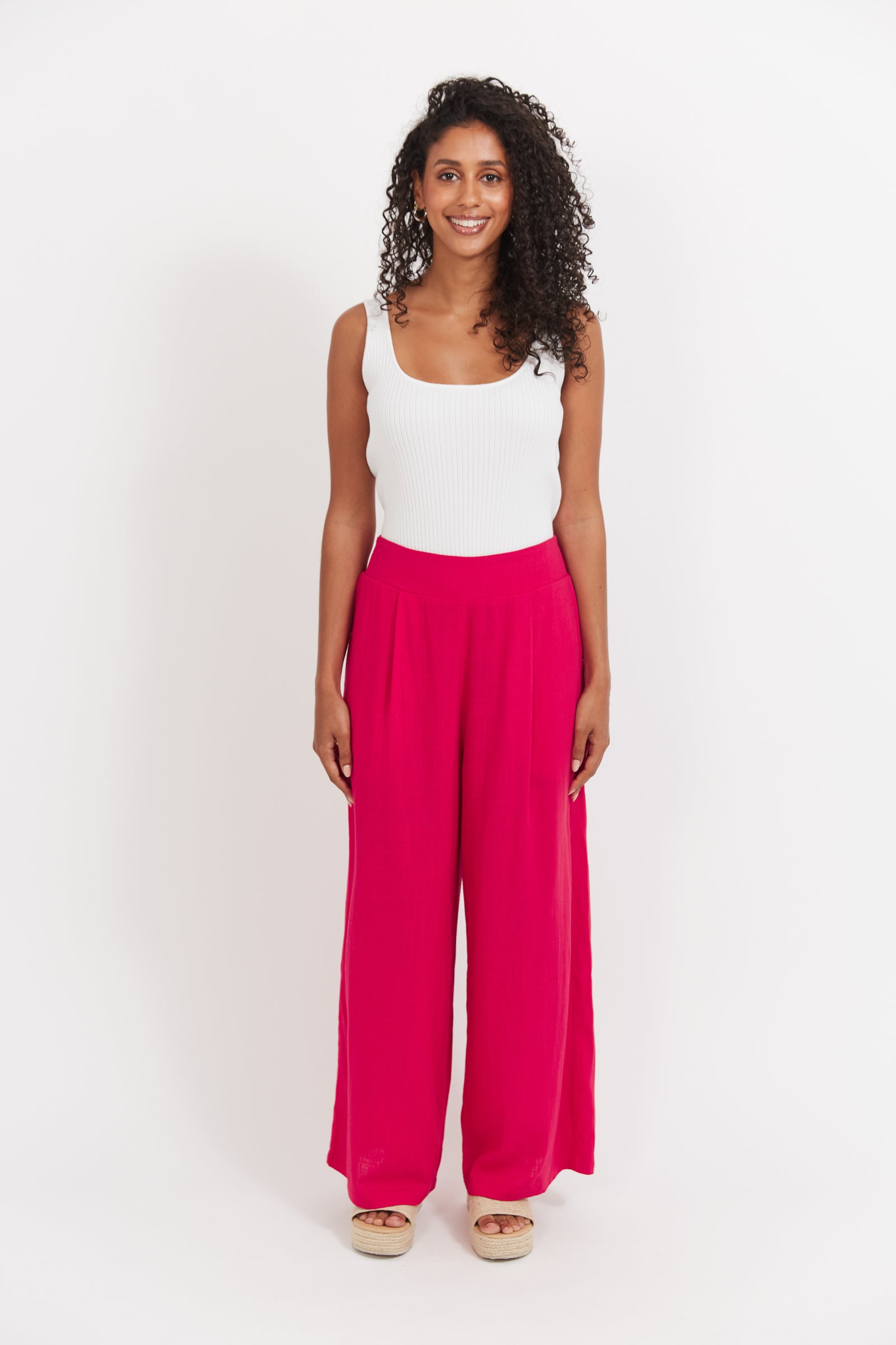 Step into effortless style with the Jardin Pant. Crafted from a soft blend of rayon and linen, these pants are designed to keep you comfortable while looking effortlessly chic. The elastic back ensures a relaxed fit, while the flat front and wide leg create a flattering silhouette perfect for any occasion.