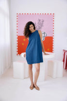 A beautifully soft and lightweight chambray tank dress, perfect for warm days. Crafted from 100% cotton to create an effortless denim look. Features a slight A-line shape, contrast topstitching, button closure at back of neckline, wide cuffed hem, and functional pockets.