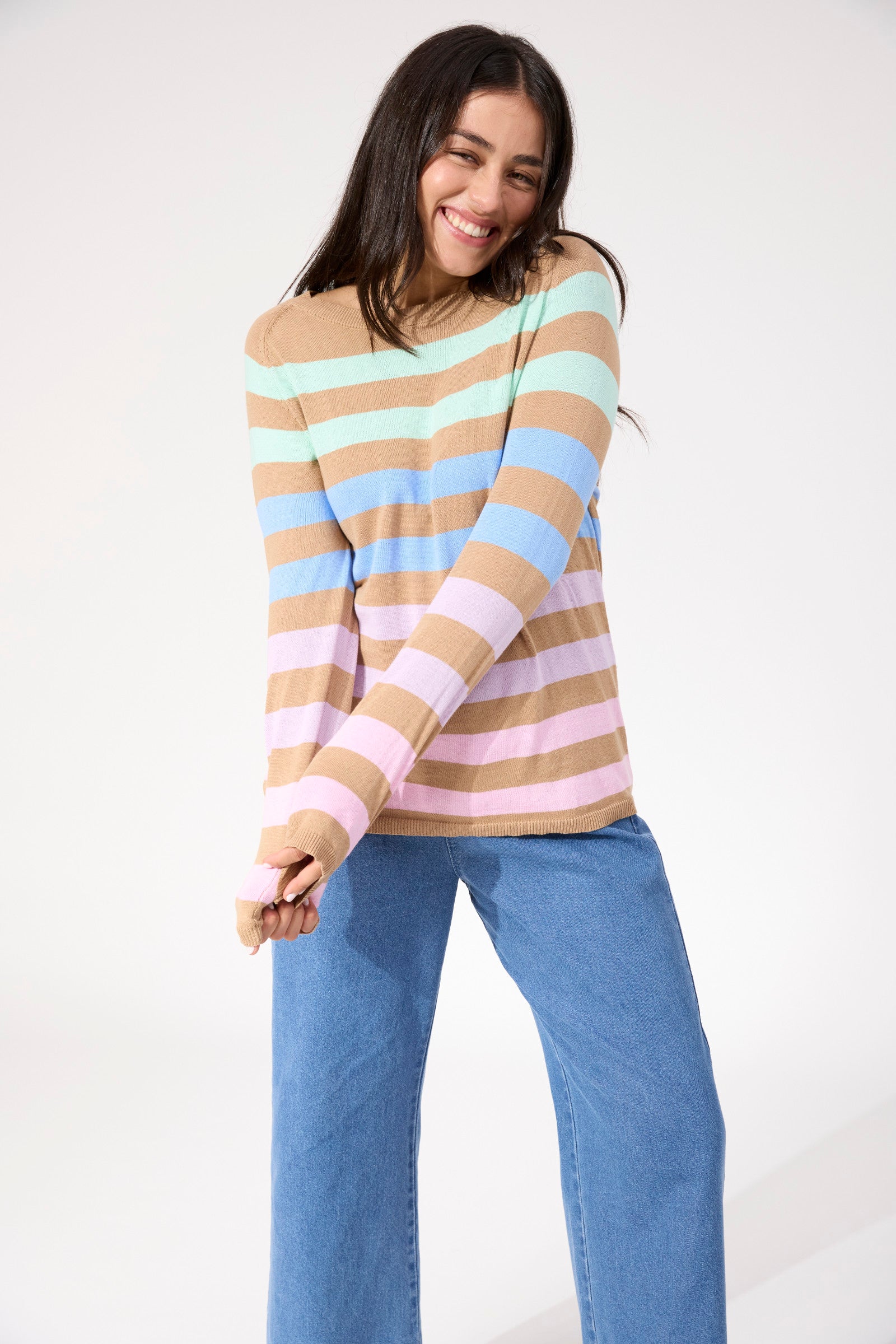 A fresh take on a classic stripe knit. The Vermont Stripe Jumper features a clean crew shape with bold stripe detailing, designed to feel relaxed and wearable. Made from breathable cotton, it's lightweight enough for layering and perfect for everyday dressing.