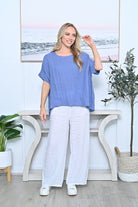 Relax into comfort with the Dolce Top, crafted from breathable linen in a beautiful denim hue. Its loose fit and high-low hem create an easygoing silhouette that moves with you, making it perfect for everything from laid-back weekends to casual workdays. Soft, stylish, and effortlessly cool — this top is your new everyday favourite.