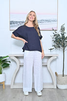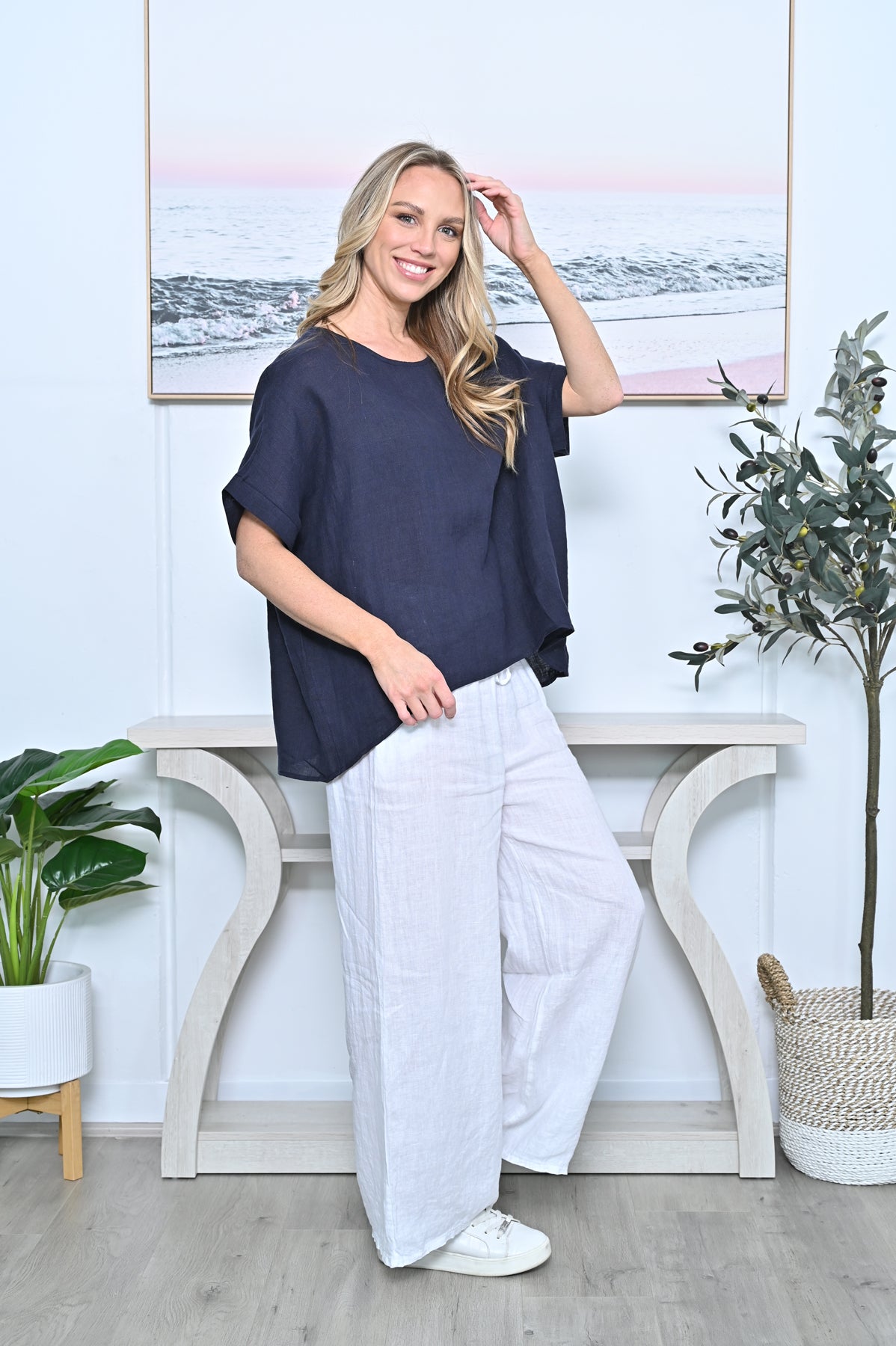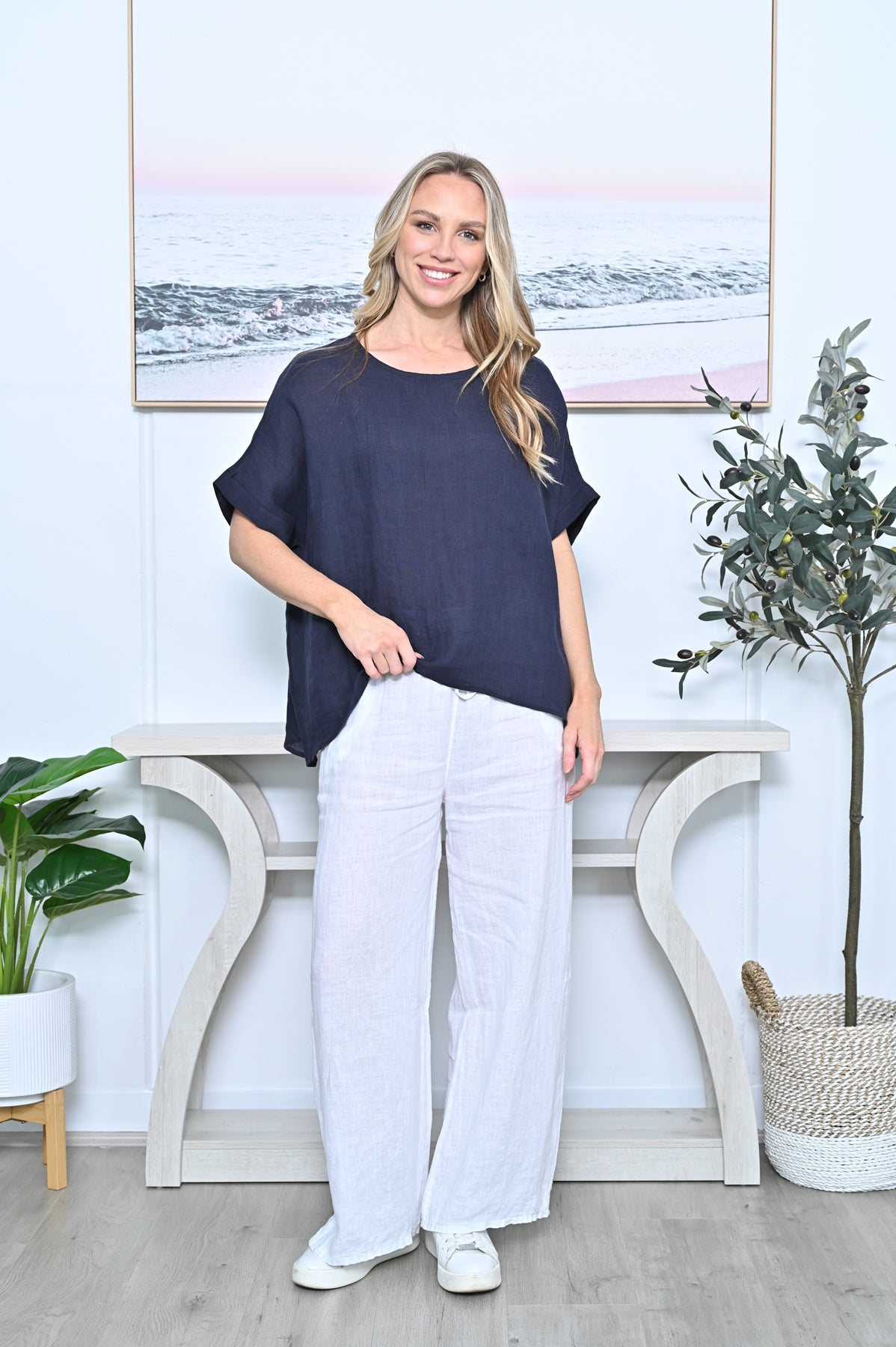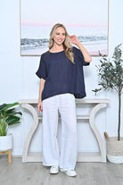 Relax into comfort with the Dolce Top, crafted from breathable linen in a beautiful denim hue. Its loose fit and high-low hem create an easygoing silhouette that moves with you, making it perfect for everything from laid-back weekends to casual workdays. Soft, stylish, and effortlessly cool — this top is your new everyday favourite.