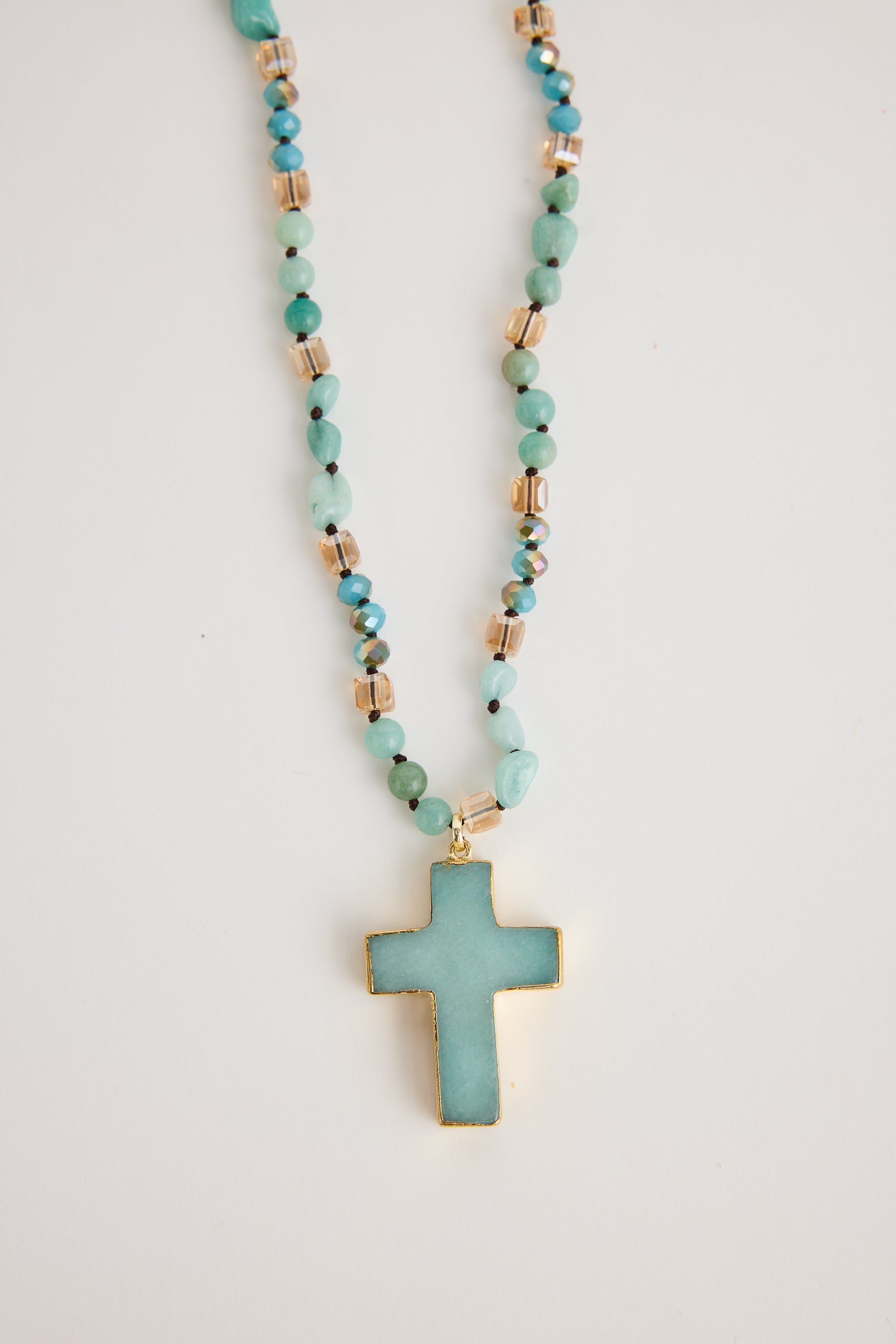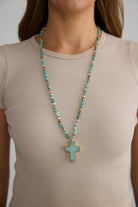 Bring a subtle, natural elegance to any outfit with the Peron Necklace. Featuring a stone cross pendant framed in a gold-toned outline, this necklace balances classic charm with a modern, understated vibe. The beaded chain, made with neutral earth-toned stones, adds a soft, organic touch that feels effortless and versatile.