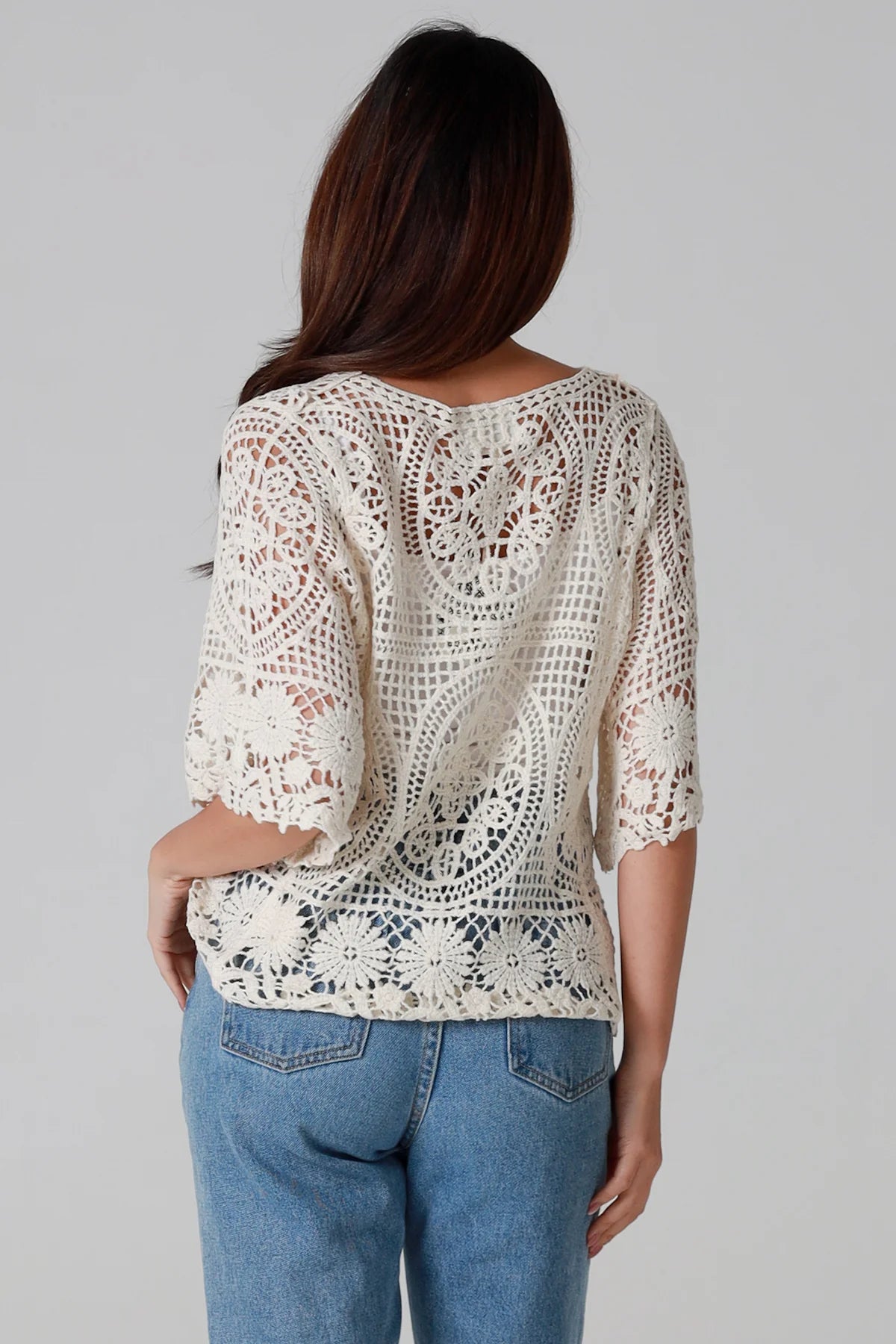 Elizabeth Cotton Lace Tie Front Top - Ivory
