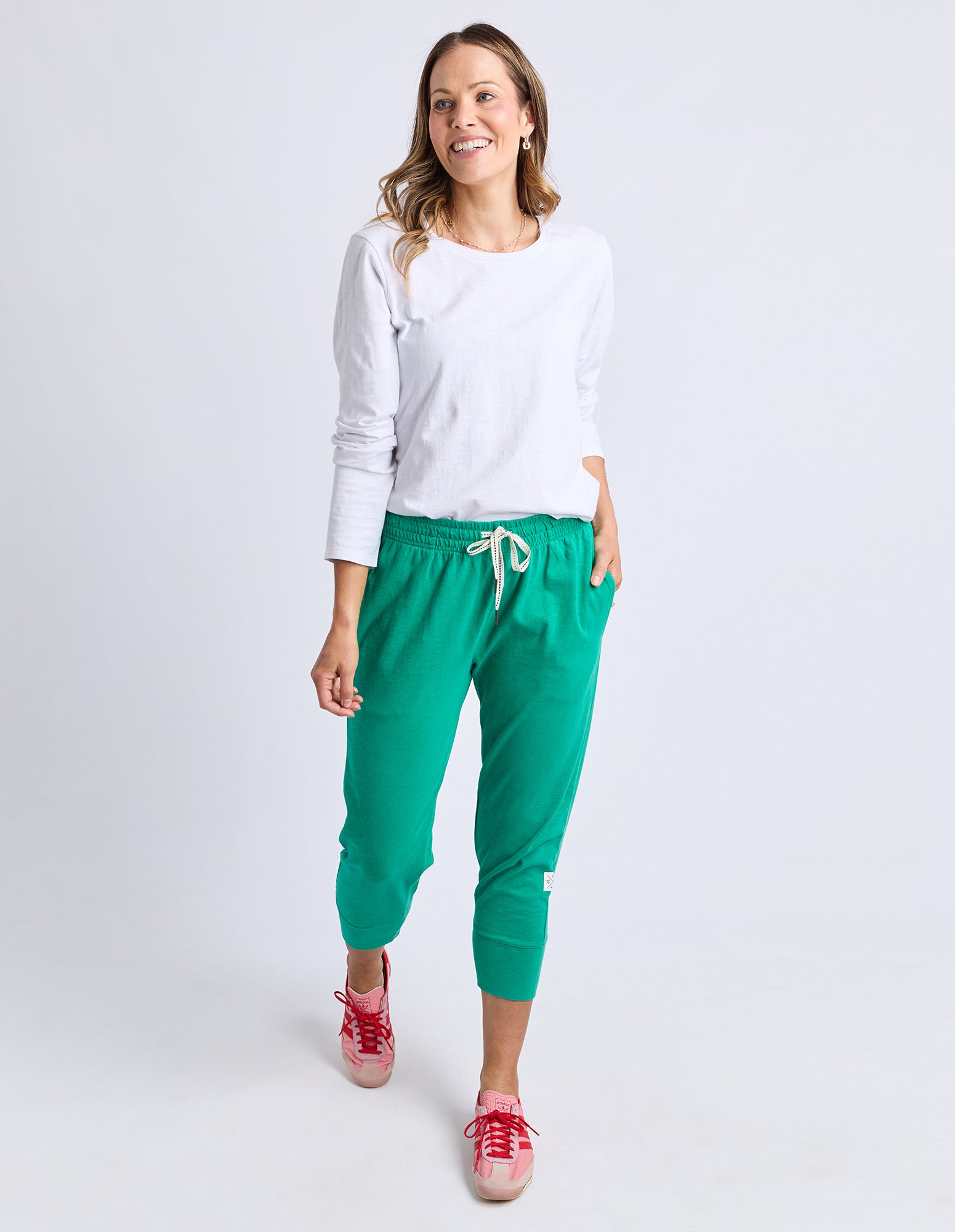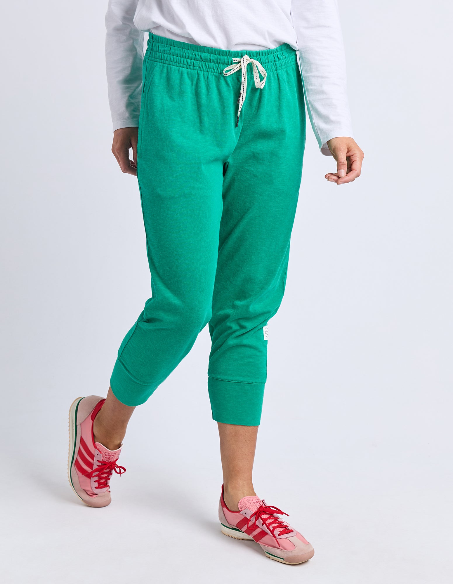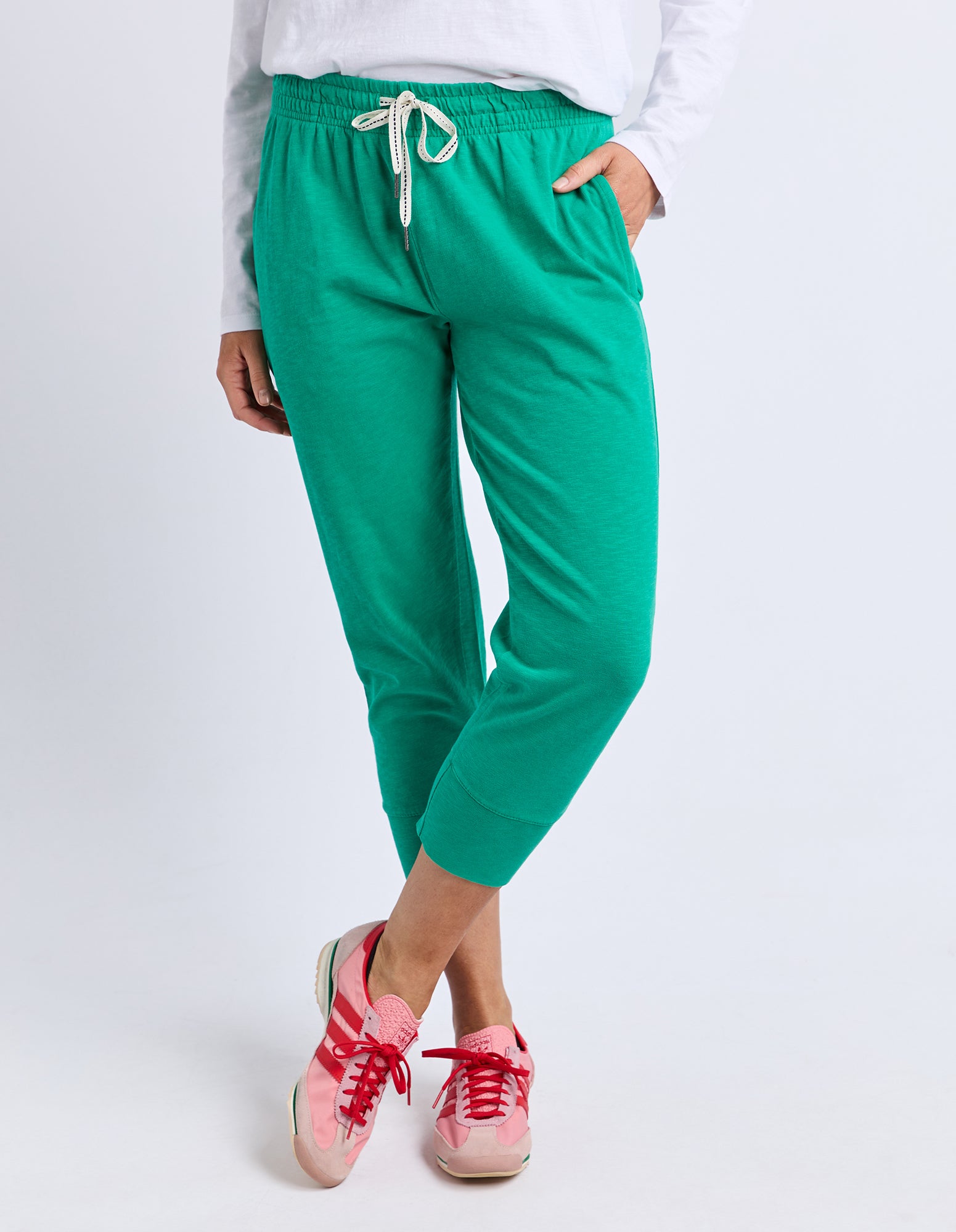 Made from 100% cotton slub jersey, the Elm Brunch Pant is a relaxed, easygoing staple designed for effortless style. With a roomy, comfortable fit and a cropped length, these pants feature a comfy elastic waistband with an adjustable tie for a personalised fit. The large cuff detail adds a stylish finishing touch, making them perfect straight out of the box for brunches, weekend strolls, or casual days out.