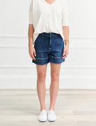 With a flattering high-rise waist and leg-lengthening cut, these shorts create a sleek, confident silhouette. The classic button and zip fly design keeps things timeless, while the functional side and back pockets make them an easy choice for everyday wear.