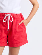 The denim short you’ll be reaching for again and again! The Emma Relaxed Short is crafted from soft yet sturdy cotton denim, giving that true denim look with all-day comfort. with this fabulous new colour, Poppy! Designed with an easy pull-on elastic waist and drawcord, these shorts feel as good as they look. Rolled cuffs and handy patch pockets add a laid-back charm that makes them perfect for weekends, holidays, or simply everyday wear.