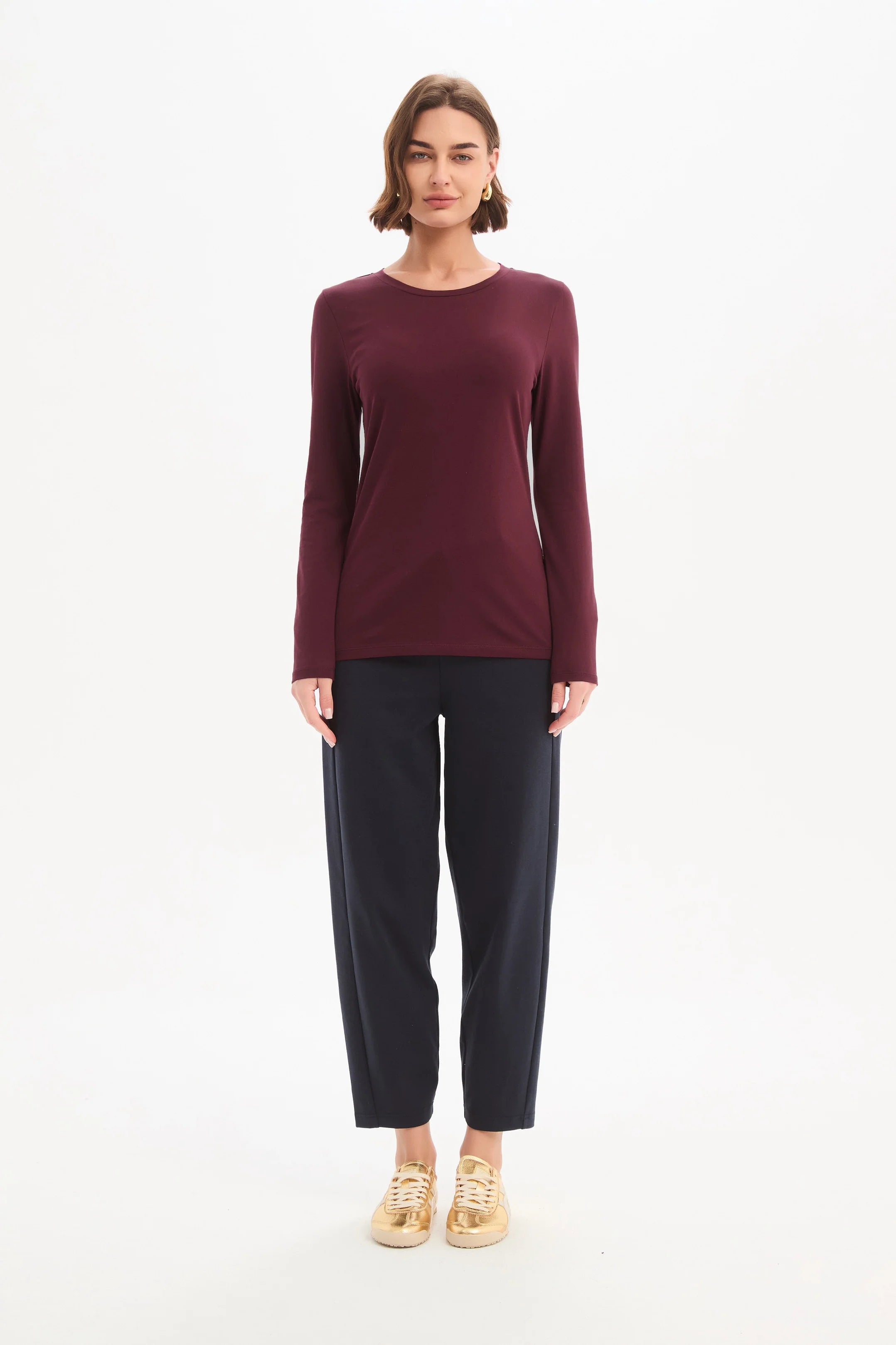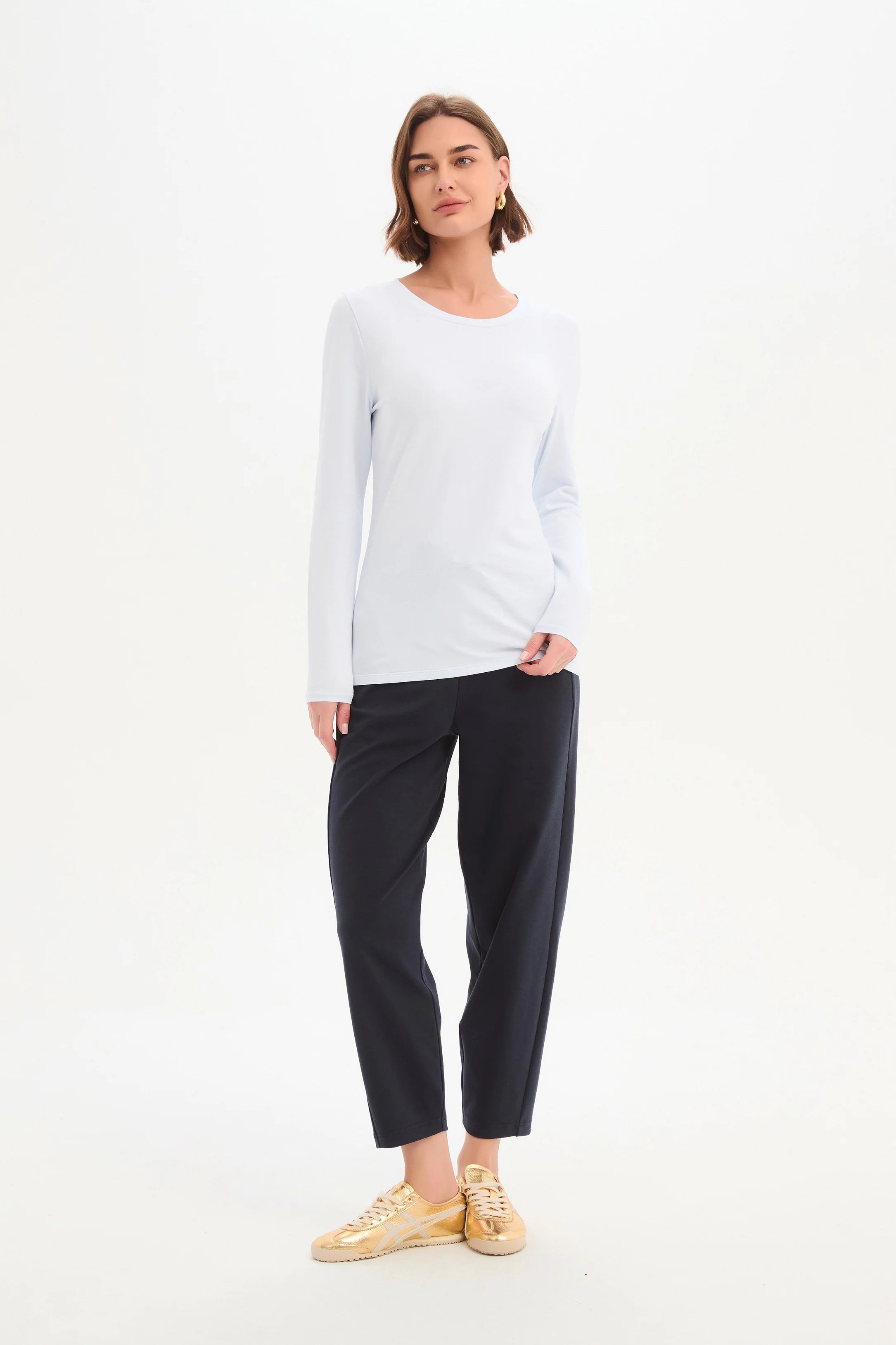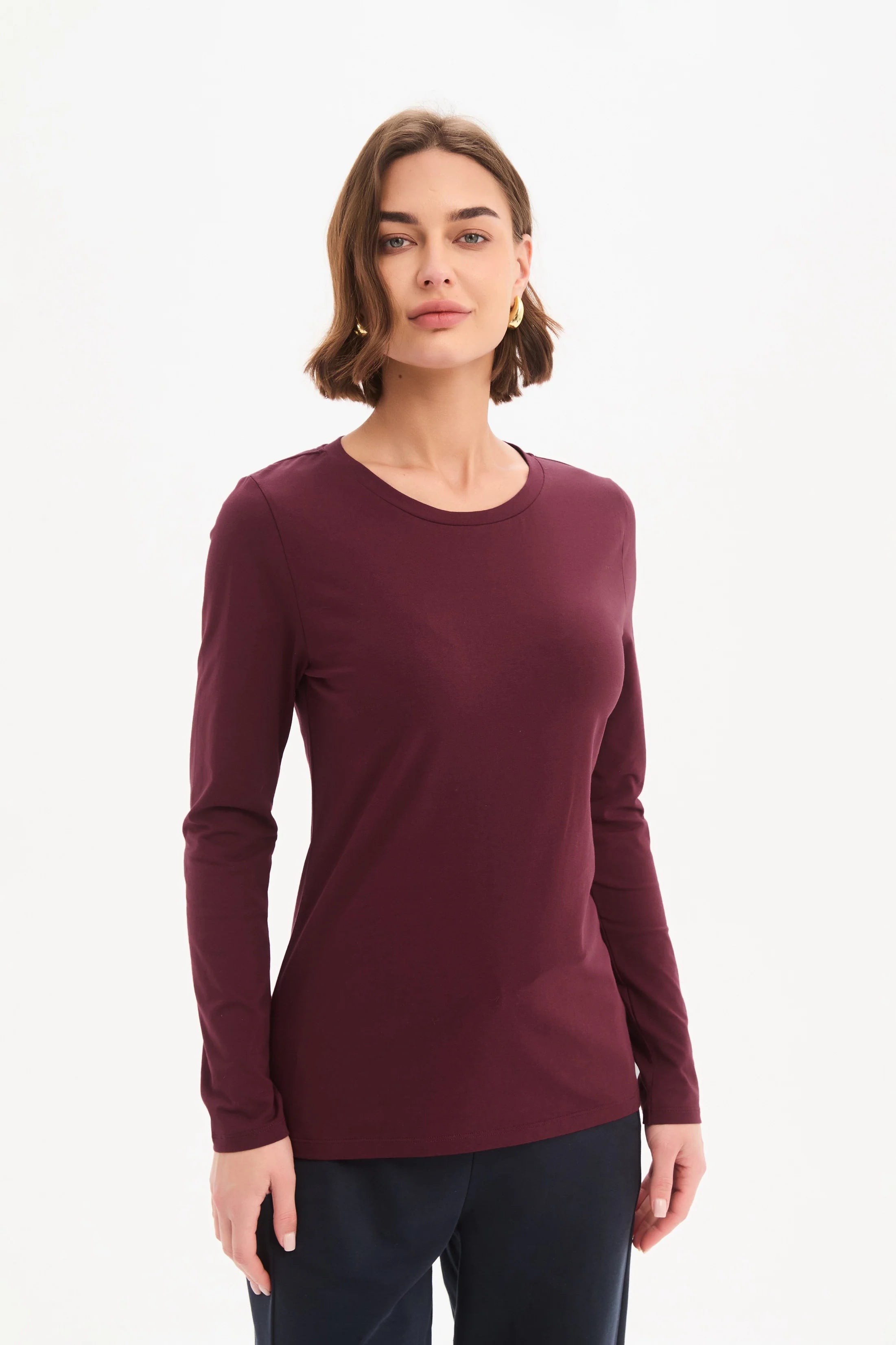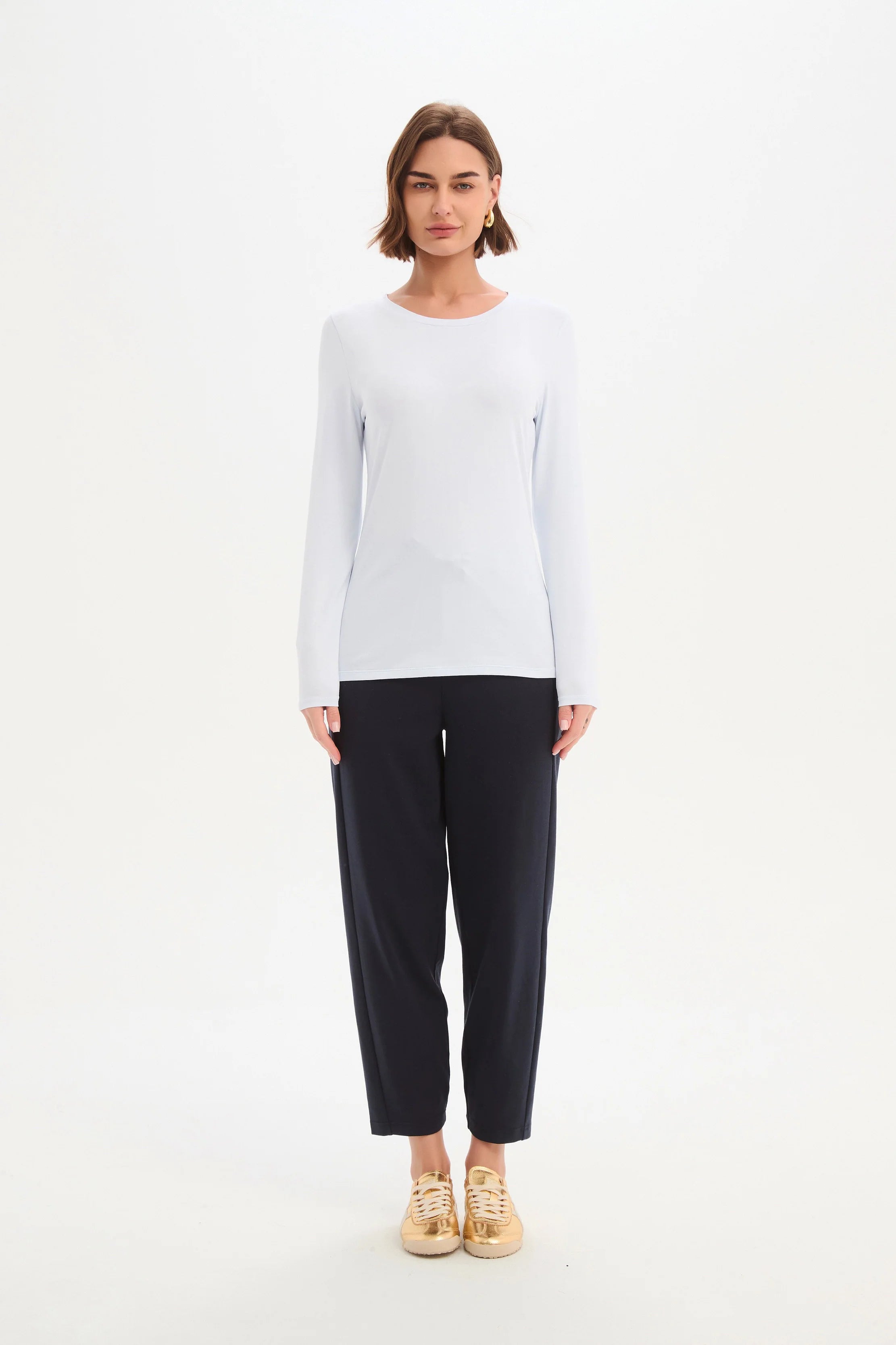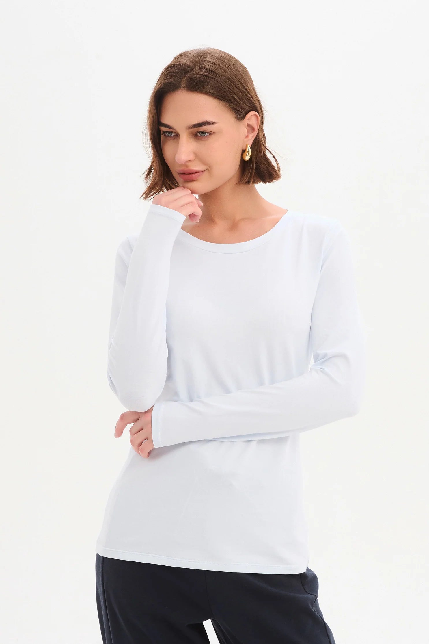 A beautiful everyday staple that quietly does a lot of work in the wardrobe. The Tirelli Long Sleeve T-Shirt is crafted from soft cotton jersey with just the right amount of stretch, creating a comfortable slim fit that feels smooth against the skin. With a classic round neckline and long sleeves, this piece is simple, refined and wonderfully easy to wear day after day.