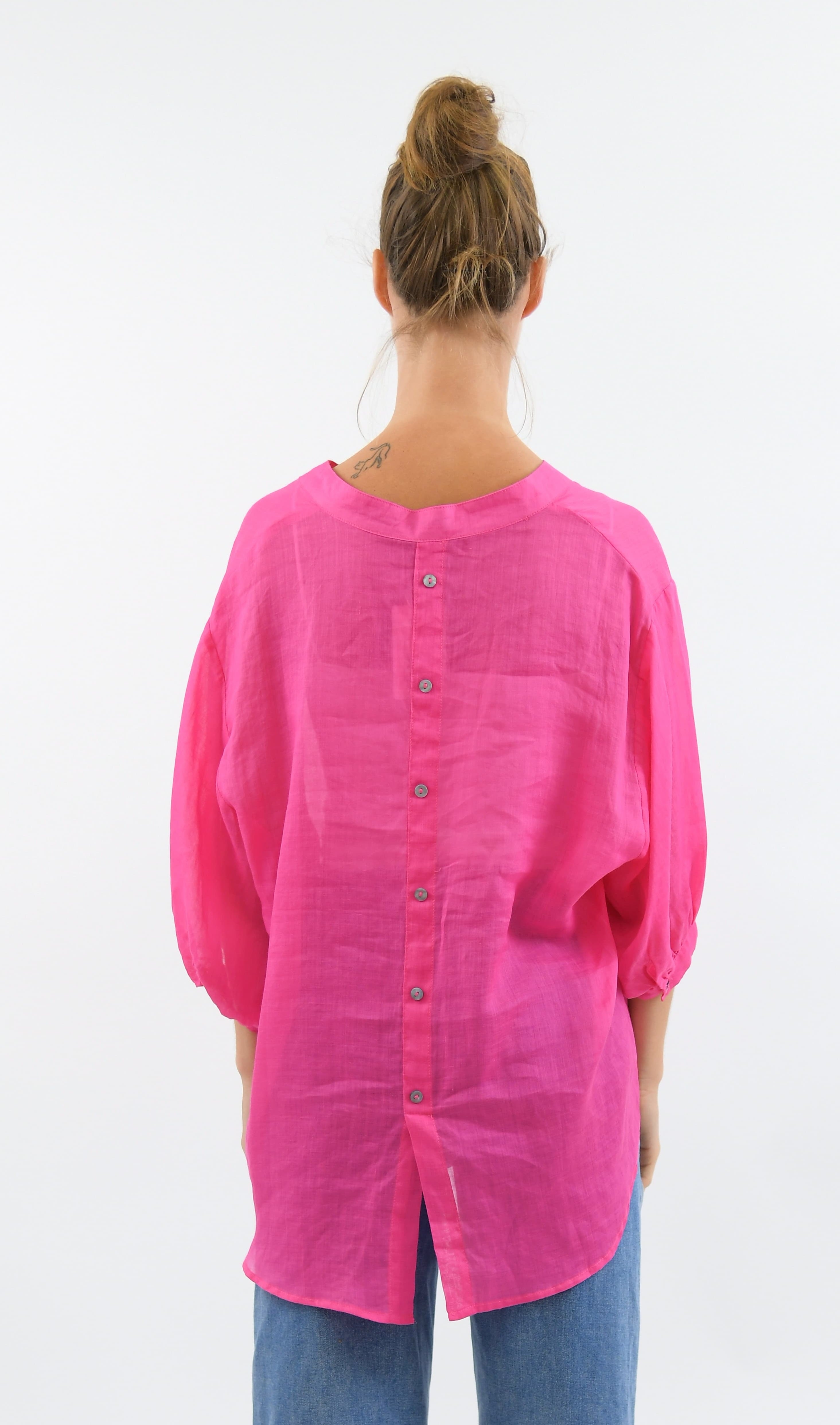 Aurora Linen Button Shirt - Barbie Pink