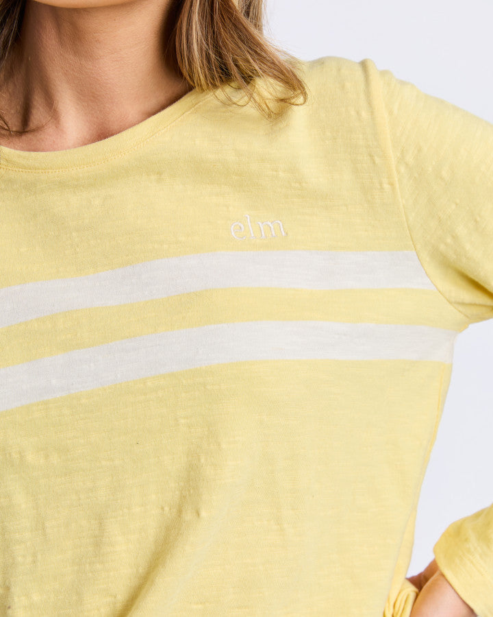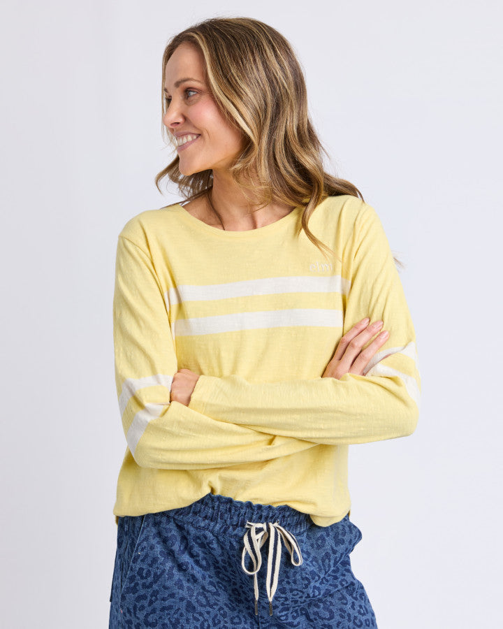 Classic with a fun twist, the Adora Long Sleeve Tee is one of those pieces you’ll reach for again and again. The yarn-dyed chest stripes add timeless appeal, while the embroidered Elm logo brings a playful touch. Easy, comfortable and endlessly wearable, it’s a true everyday staple.