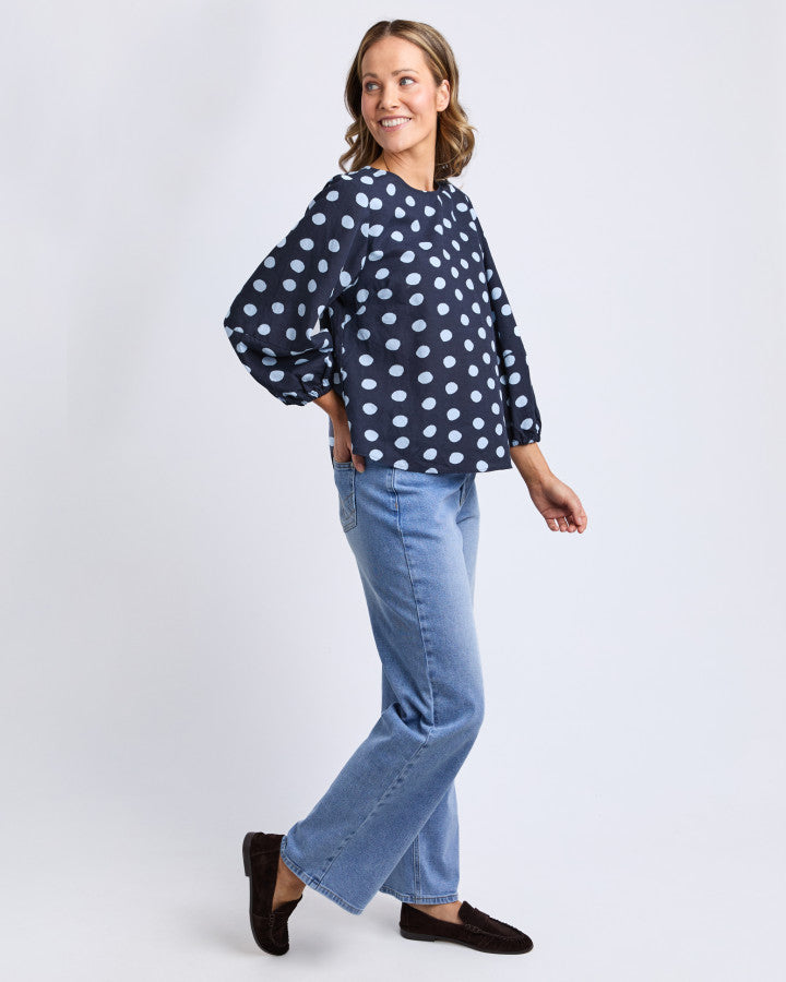 The Dotty Top is all about easy charm with a soft, lightweight feel you’ll love wearing. Crafted in a beautiful lyocell and linen blend, it drapes effortlessly and feels gentle against the skin. The navy base with pale blue spots adds a touch of fun while still keeping things classic and easy to style.