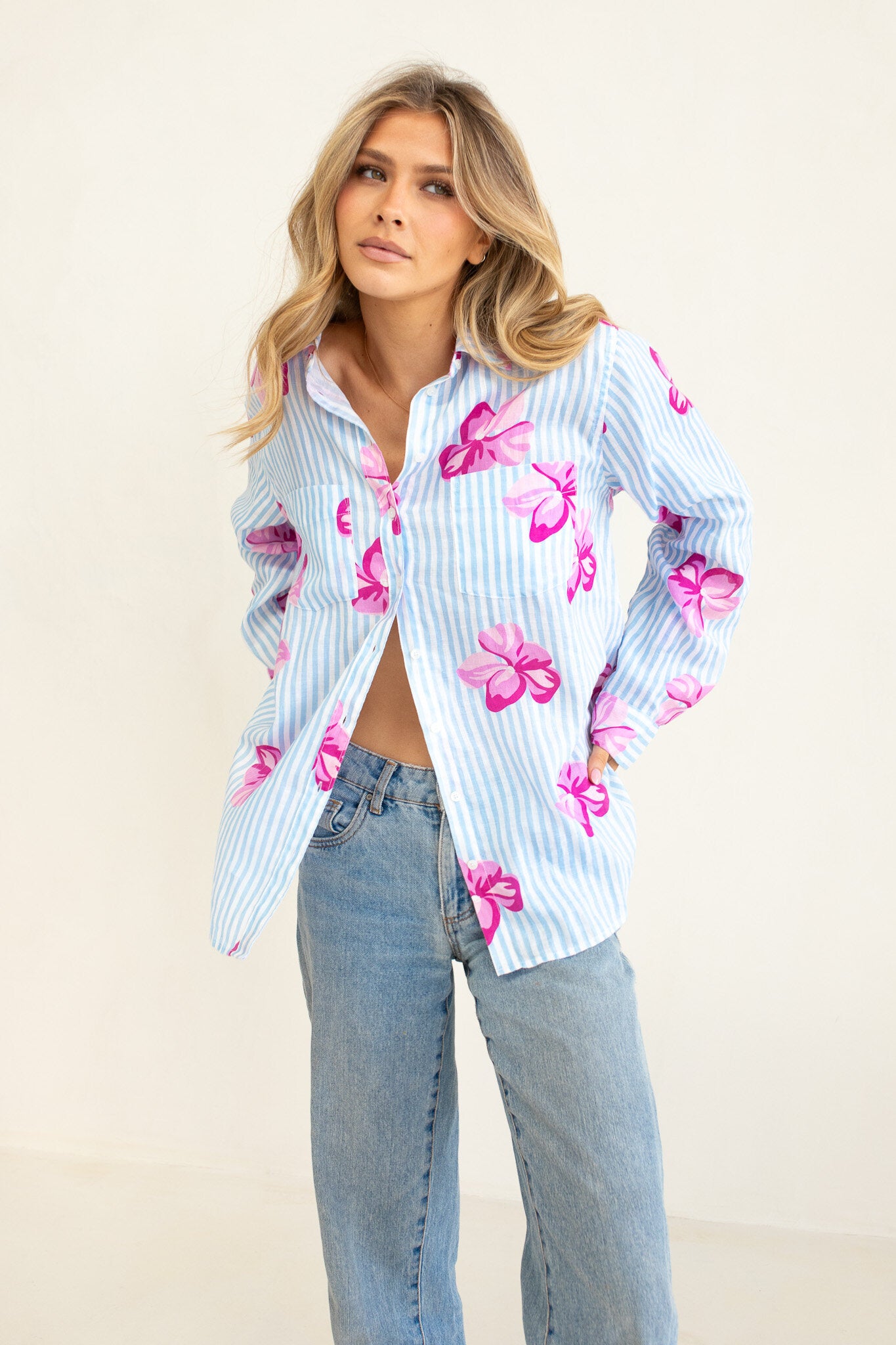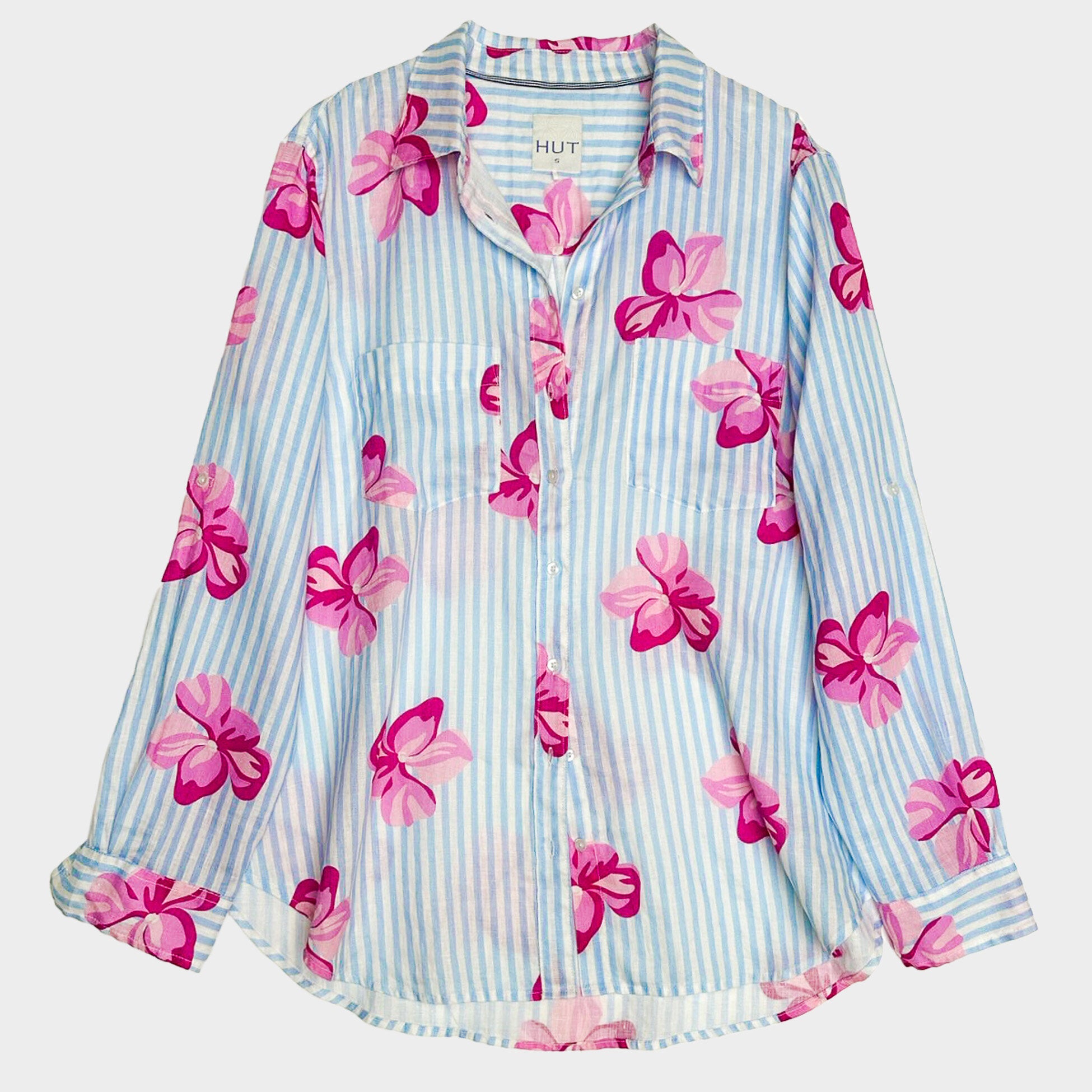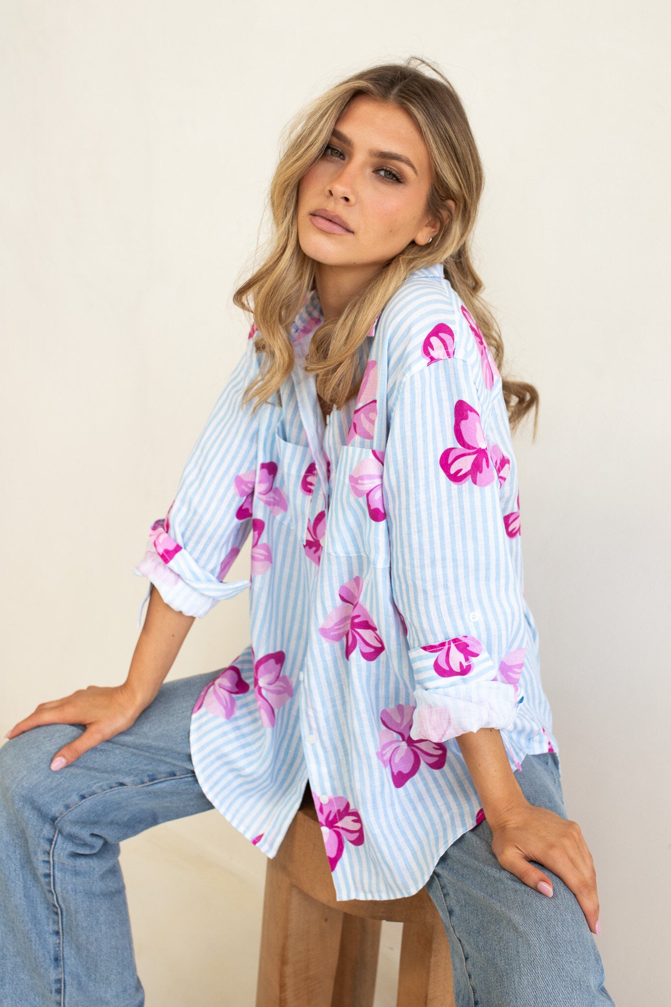 Wear it loose over jeans, half-tucked with linen pants, or tied at the waist for an easy weekend vibe. Roll up the tab sleeves for a laid-back look that works from coffee runs to coastal strolls.