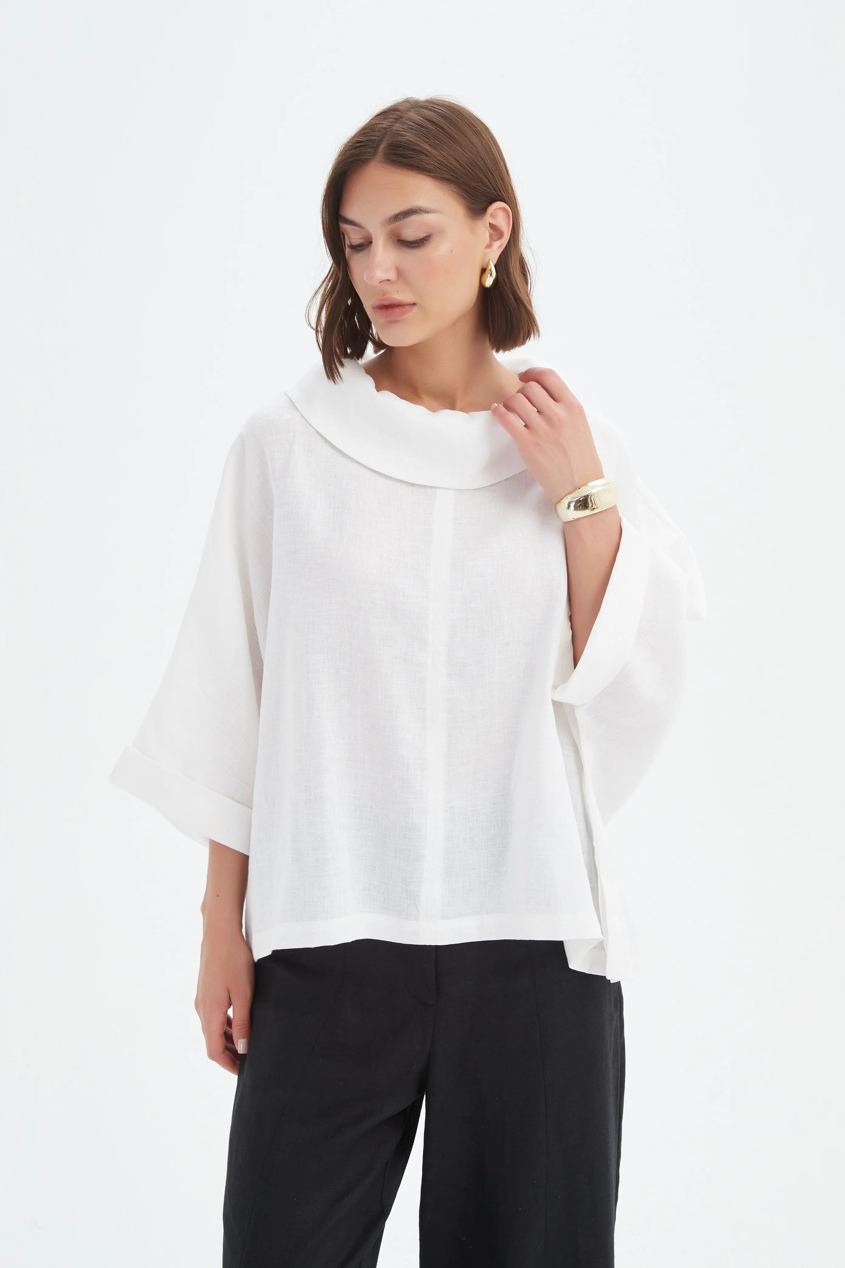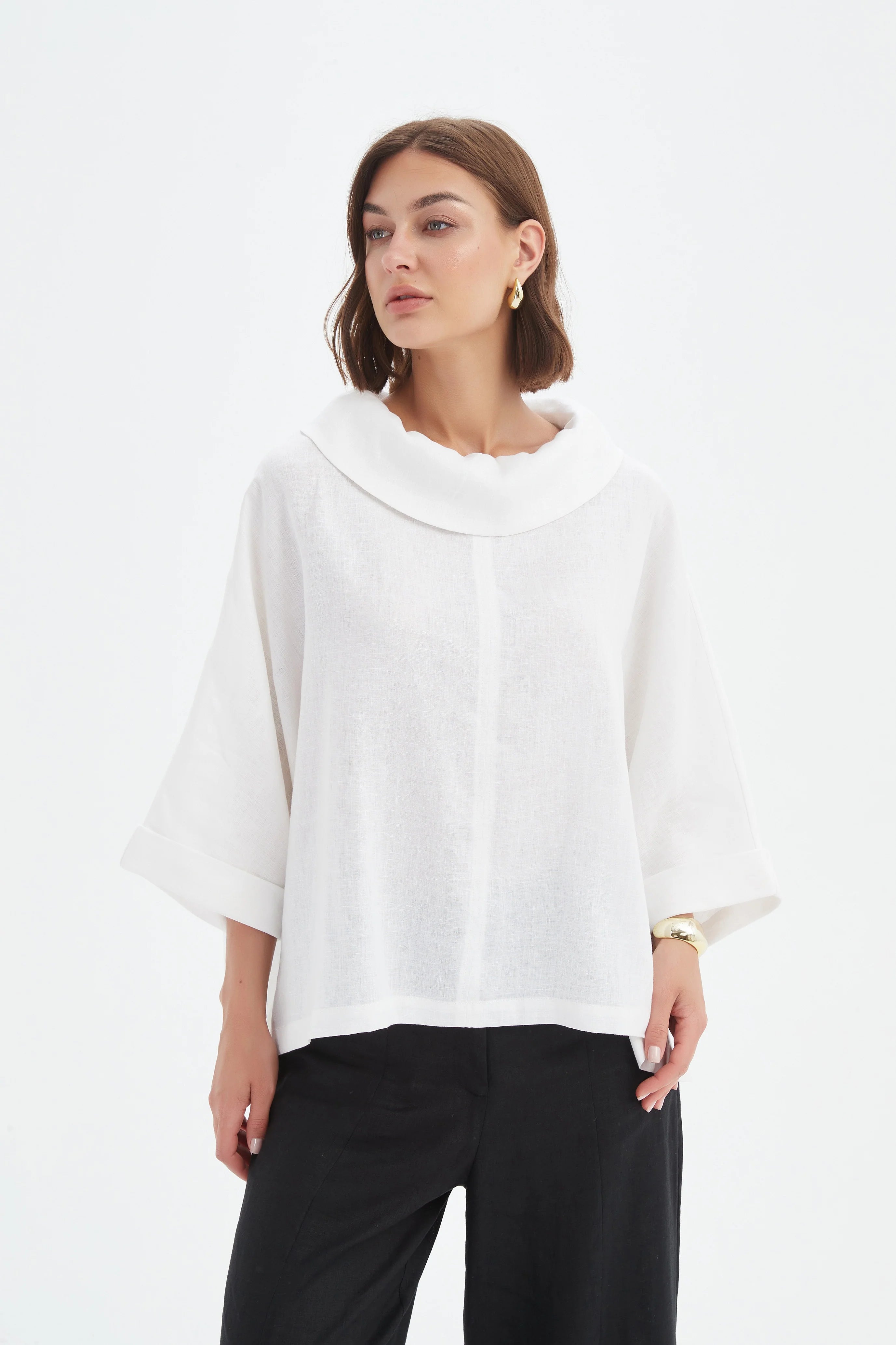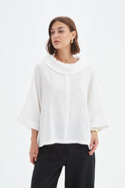 Meet your new go-to for effortless style—the Funnel Neck Boxy Top. Crafted for comfort and modern charm, this top features a relaxed funnel neck and a contemporary boxy shape, beautifully complemented by flattering 3/4 sleeves with rolled arm cuffs. Subtle side splits and a batwing silhouette give it a laid-back, stylish vibe, perfect for everyday wear.