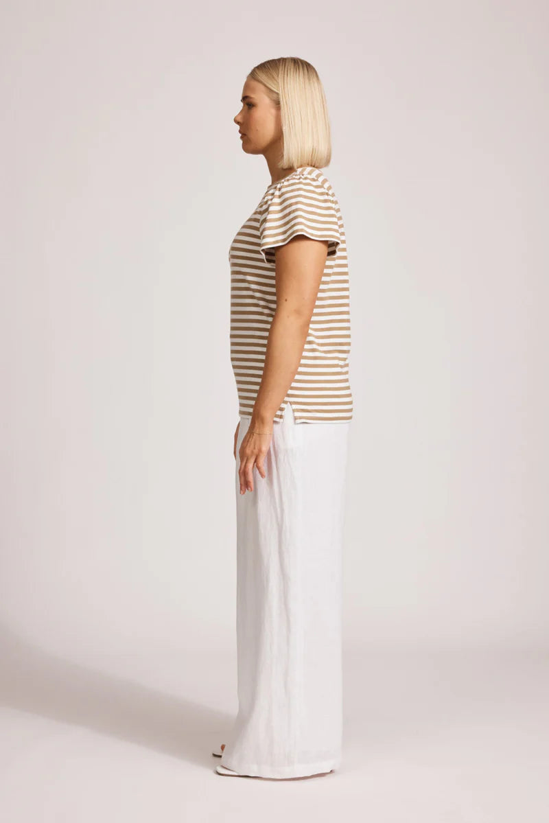 A true wardrobe classic with a feminine twist, the Striped Flutter Tee is all about effortless style and comfort. Made from a cotton-rich stretch fabric, it keeps its shape beautifully while feeling soft and breathable on the skin. The flutter sleeve detail adds just the right amount of charm, making it more than your everyday stripe.