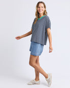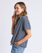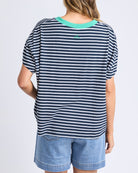This easy going tee brings relaxed comfort with a polished feel, perfect for those days when you want something simple that still looks thoughtfully put together. The yarn dyed stripe gives it a timeless charm, while the soft stretch jersey keeps it comfy from morning coffee runs to weekend errands. The V neck adds a gentle, flattering touch that feels both casual and a little special.
