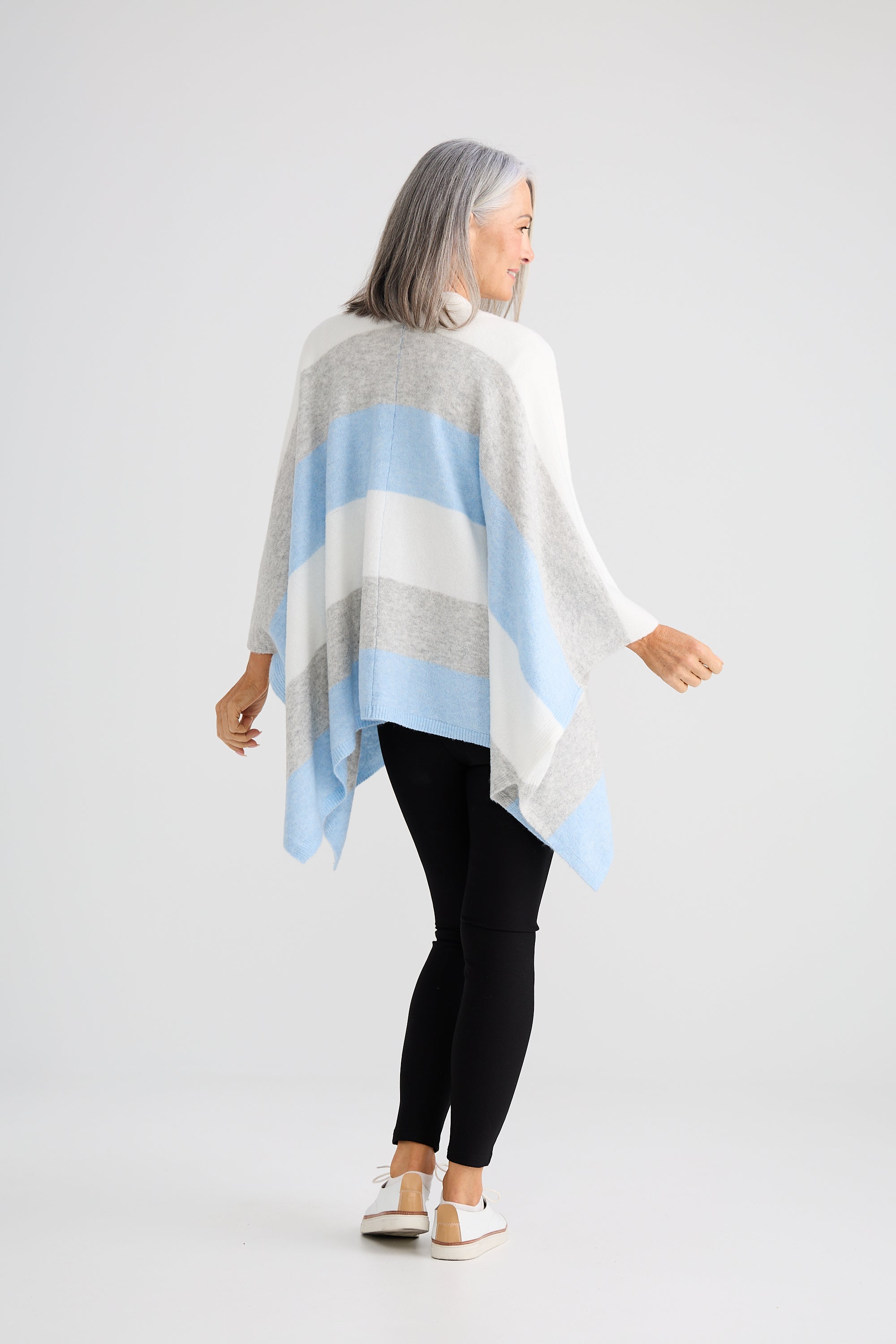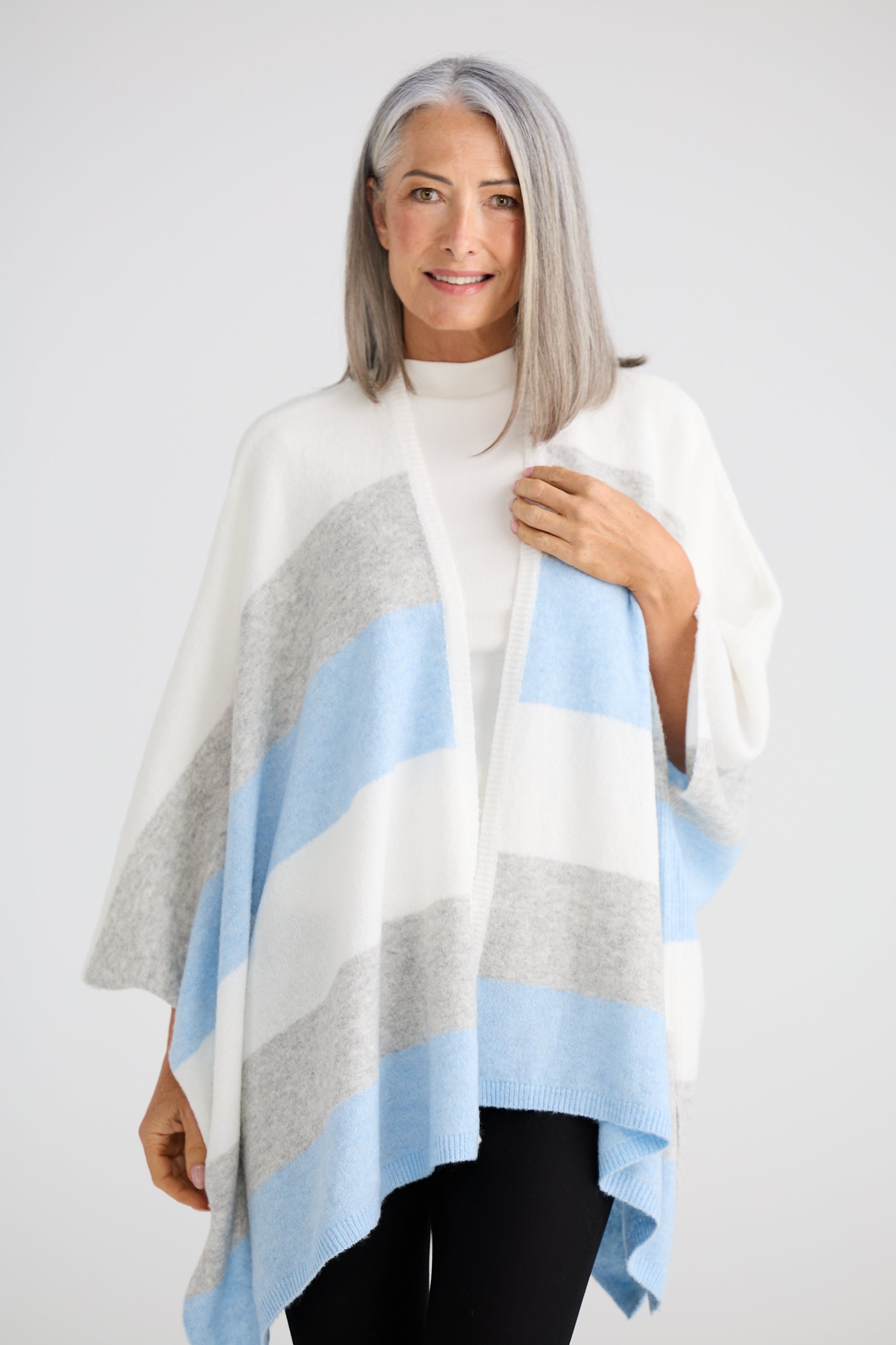 The Sander Knit Cape is your go-to layer for easy, everyday style. With its throw-on design and relaxed fit, it’s perfect for adding a touch of warmth without fuss. The tonal multi-stripe knit adds subtle texture and visual interest, while the soft, fine fluffy feel makes it a cosy companion for cooler days.
