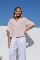 Breezy, relaxed, and effortlessly chic, the Sole Linen Top is a summer wardrobe essential. Crafted from 100% linen, it keeps you cool while looking stylish. The relaxed fit and elbow-length sleeves make it comfortable and easy to wear, while its versatile design coordinates effortlessly with shorts, skirts, or linen pants for a polished summer look.