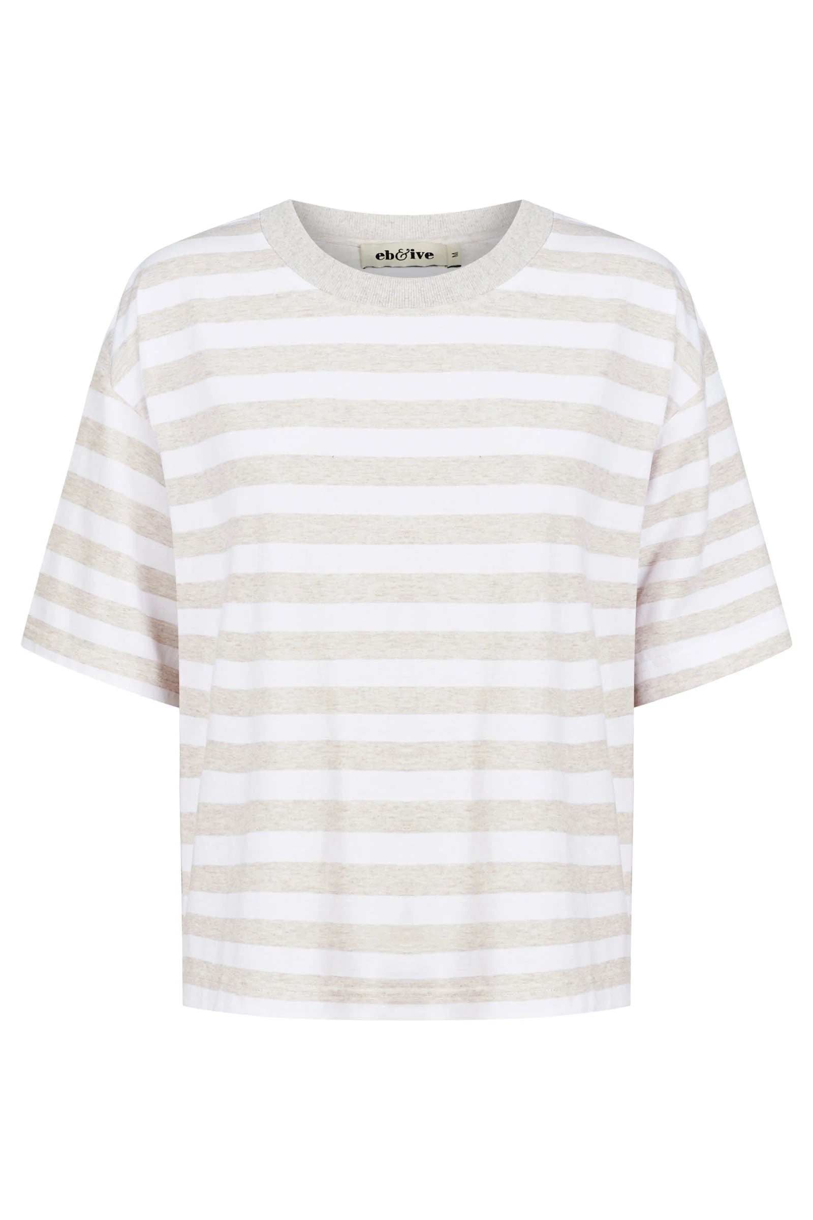 A fresh wardrobe staple with timeless appeal. Crafted from a breathable and lightweight cotton blend with slight stretch. Features classic stripes, a crew neckline, and elbow-length sleeves. Designed in a boxy silhouette for a modern fit.