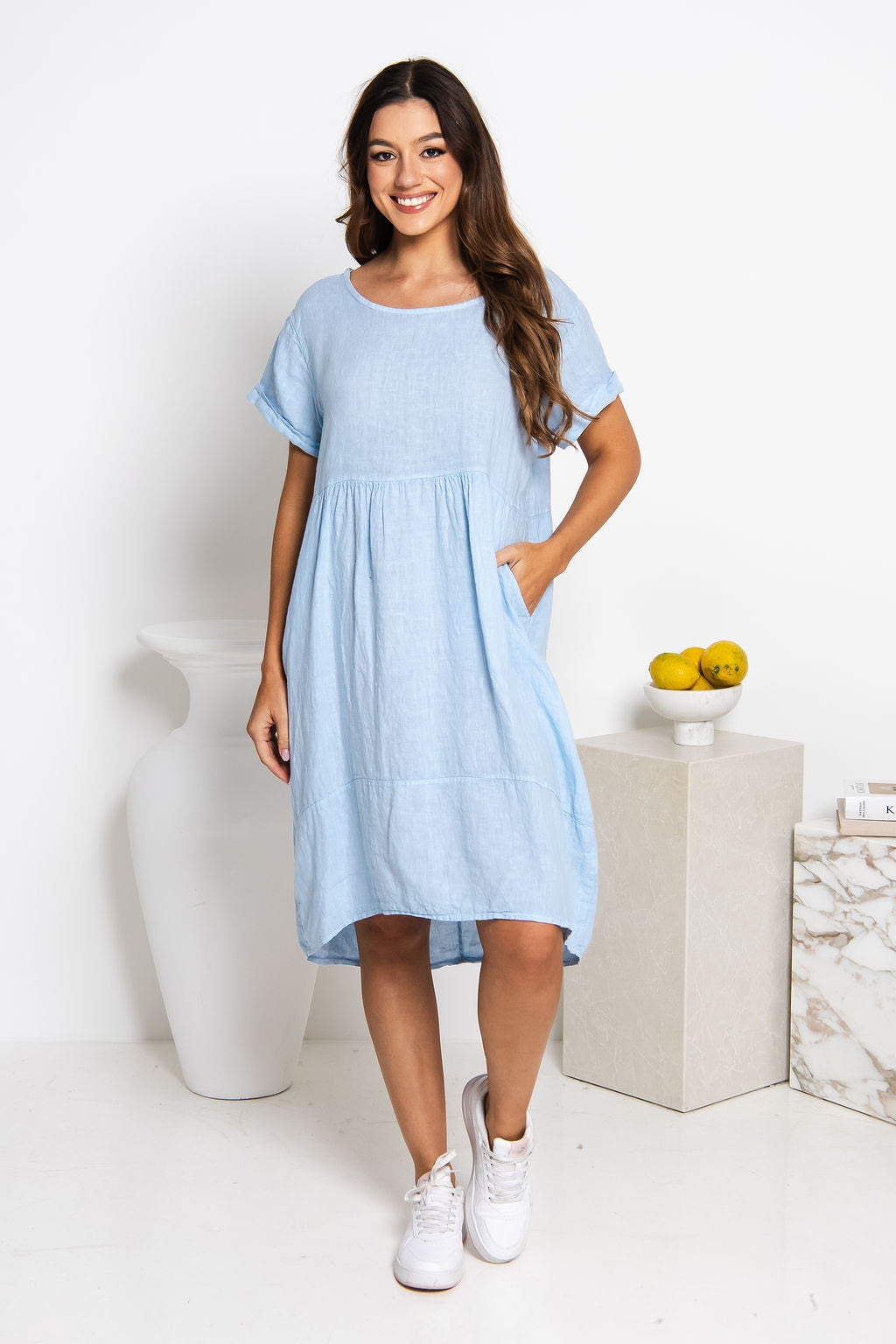 The Addrianna Dress is a breezy, effortlessly stylish piece perfect for warm days. Crafted from 100% linen, it’s lightweight, breathable, and wonderfully soft against the skin. The baby doll silhouette with short sleeves and knee-length cut keeps things comfortable and playful, making it a go-to for casual outings or relaxed weekend vibes.