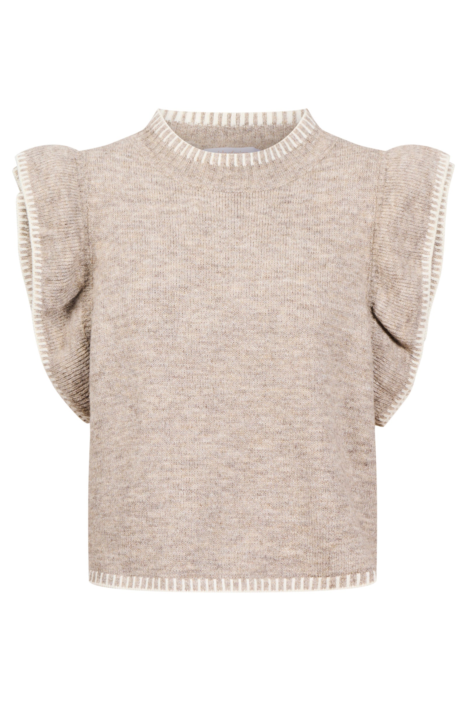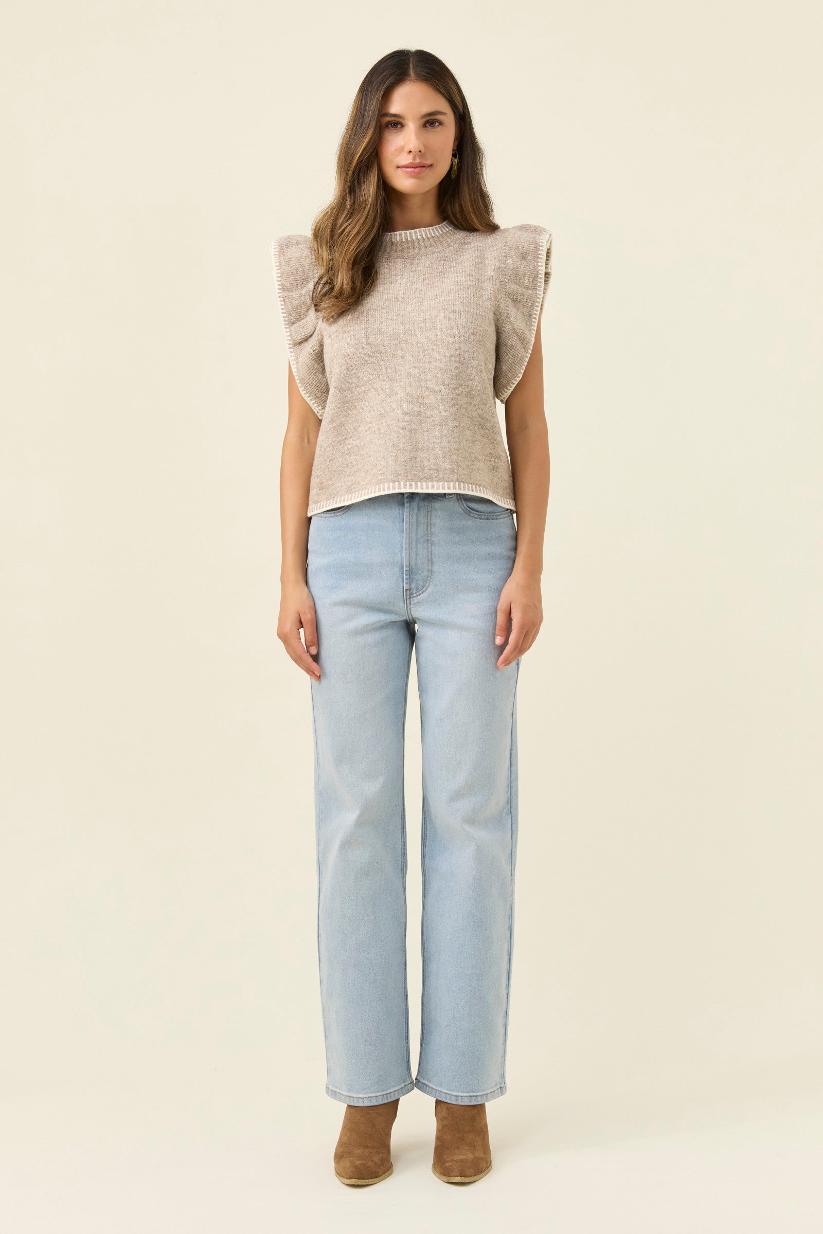 A much-loved silhouette reimagined for the season. The Athena Frill Knit Top features a soft marle knit in a wool-blend, with layered flutter sleeves and contrast blanket stitch detailing, designed to bring texture and warmth to everyday looks.