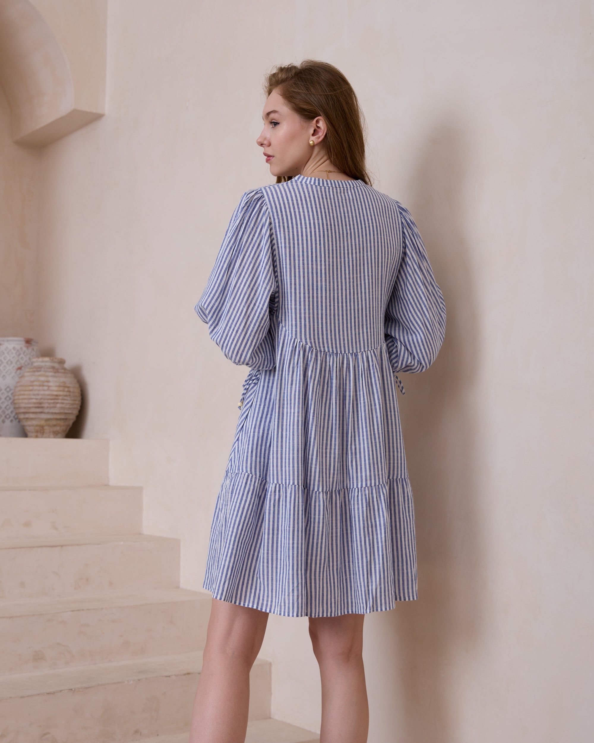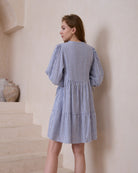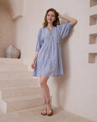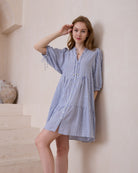 Say hello to the Babydoll Stripe Dress, your new light and effortless piece for sunny days and relaxed weekends. Made from soft, breathable cotton, it falls in a floaty silhouette with a button-through front and subtle tiering that feels easy, feminine and comfortable. The ¾ sleeves with adjustable tie detail add a touch of charm while keeping the look relaxed and wearable.