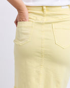 Meet your new go-to denim delight! The Belle Skirt is a playful twist on the classic denim skirt you know and love. Crafted from medium-weight stretch cotton denim, this midi-length skirt features a flattering straight cut, a zip front, and a fitted waist that hugs in all the right places. Hip pockets add a casual, easygoing vibe — perfect for day-to-day adventures or dressing up for a casual catch-up.