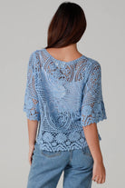 Elizabeth Cotton Lace Tie Front Top - Blue