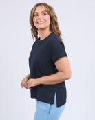 An easy everyday favourite, the Jesse Short Sleeve Tee brings together comfort and style in the most effortless way. Made from soft Australian cotton jersey, it’s a classic you’ll reach for again and again. With a relaxed shape, turned-up cuff detail, and side splits for movement, it’s the perfect partner for jeans, skirts, or shorts.