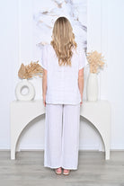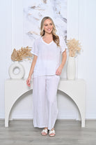Fresh and effortlessly chic, the Marina Top is made from breathable linen with a flattering V neckline framed by a delicate small ruffle for a touch of feminine charm. The short sleeves and high-low hem add easy movement and a modern silhouette, making it a versatile piece you’ll love to wear from day to night.
