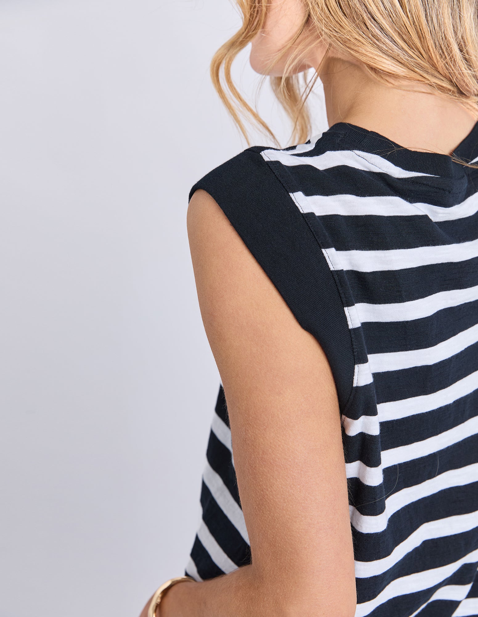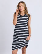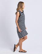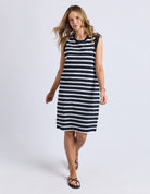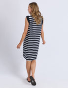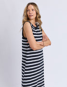 The Reform Stripe Dress brings a fresh twist to an everyday favourite. Crafted from soft, breathable cotton with a black and white yarn dyed stripe, it offers an easy fit that feels relaxed while still looking polished. The contrast arm bands add a fun touch of detail, making this dress one of those effortless pieces you can count on for comfort and style.