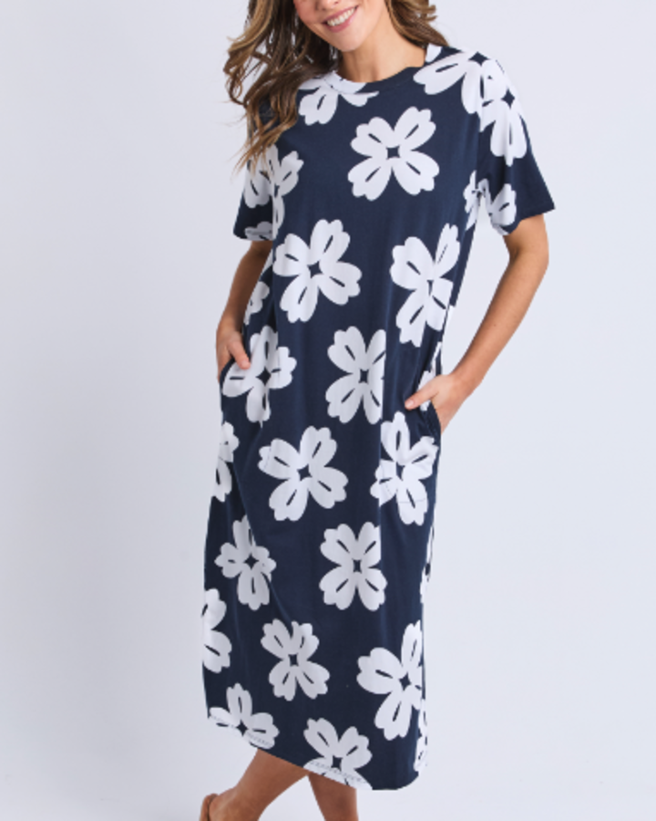 Bring a little casual cool to your day with the Vera Tee Dress. Crafted from 100% organic cotton, it’s soft, breathable and made for effortless comfort. The fresh white floral print adds a bold touch to this classic tee dress silhouette, giving it that easy charm you’ll love to wear again and again.