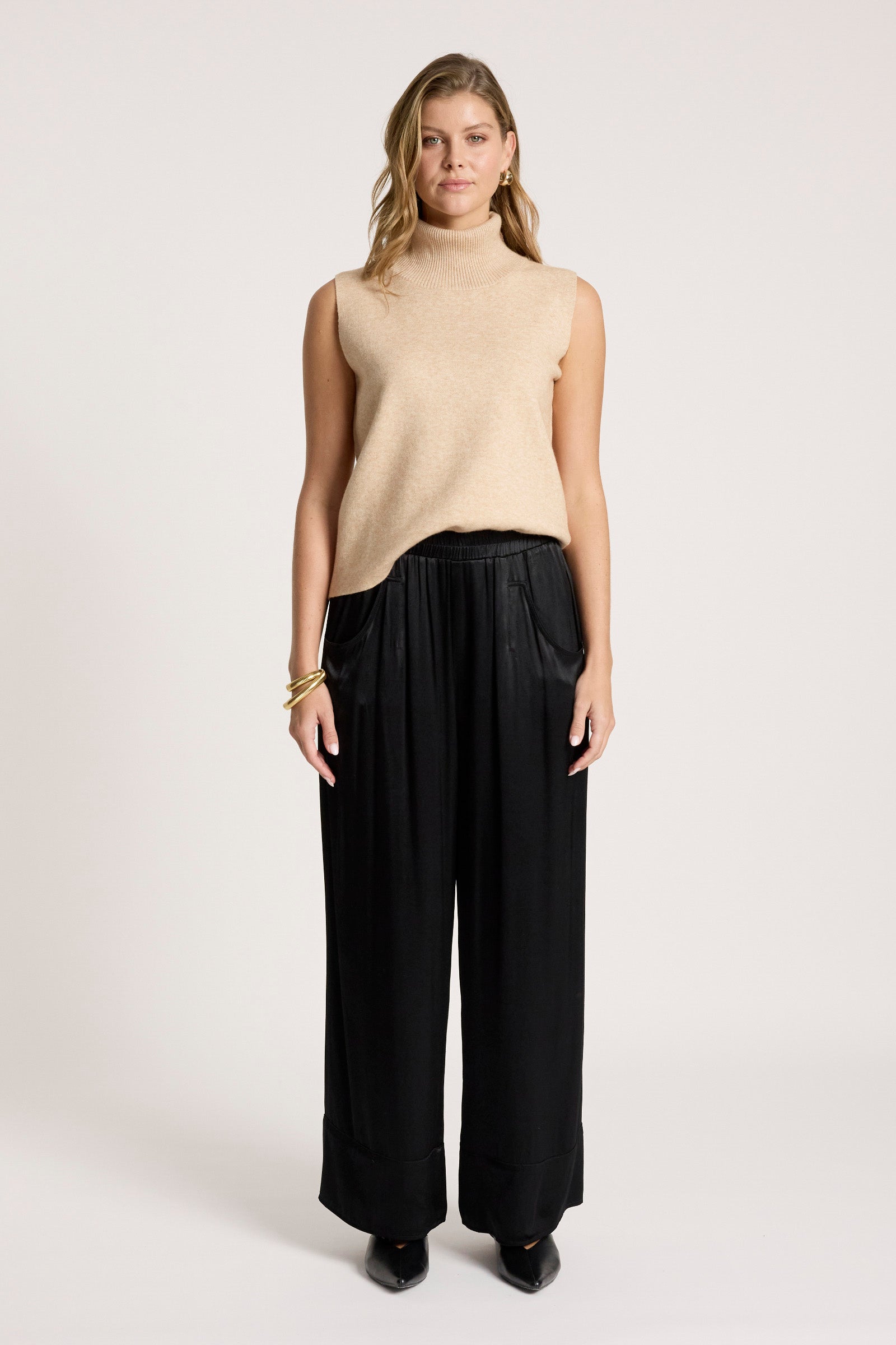 A sophisticated knit vest designed as an effortless winter essential. Featuring a high neckline and sleeveless silhouette, the Zala Knit Vest adds warmth and structure while maintaining a clean, modern profile. Ideal for work-to-evening styling.